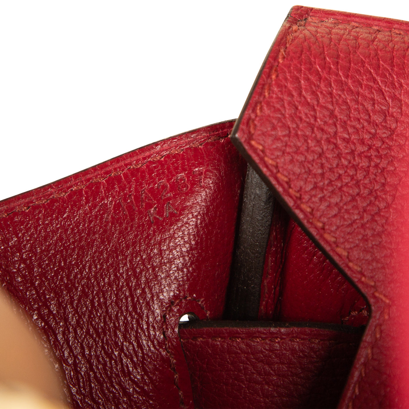 The Hermès Birkin is among the most famous bags in the world. First created in 1983 after Jean-Louis Dumas met Jane Birkin on a flight from Paris to London. In the short flight, Birkin explained that she needed a bag which was spacious enough for everything she needed to carry, with plenty of pockets as well. He sketched the first bag there and then, and the rest is history. Thirty-four years later, this bag has been created in a huge variety of styles and materials. This version of the Birkin is crafted out of stunning, Hermès Rouge Grenat Togo leather and perfectly complimented with gold-tone hardware.