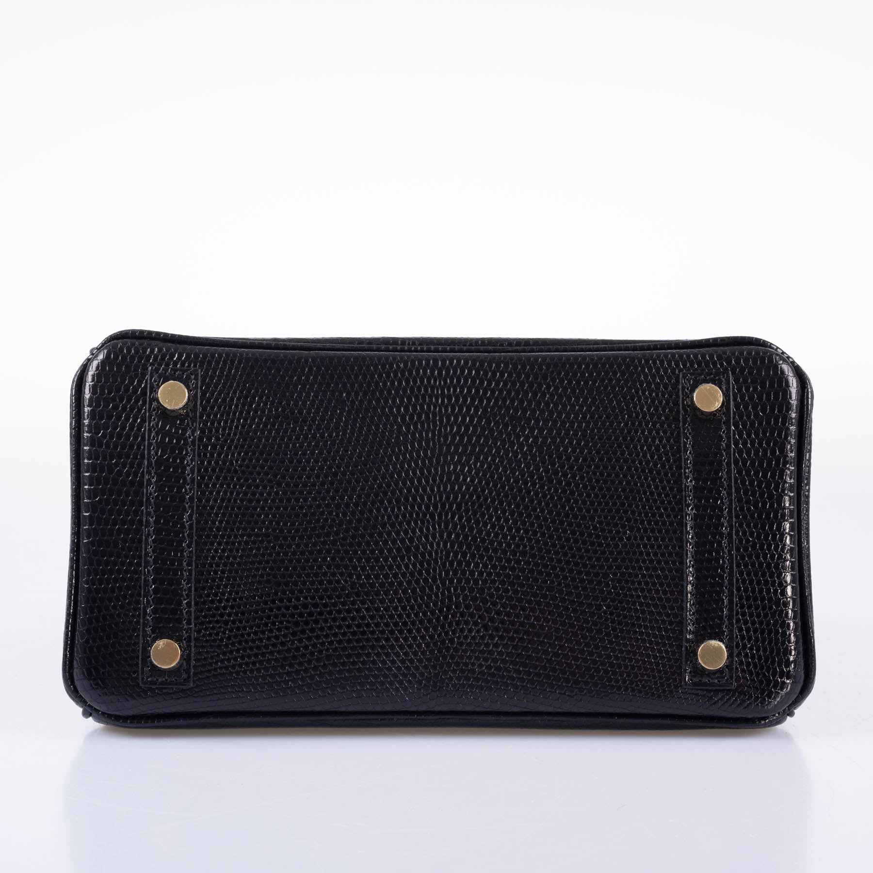 For the discerning handbag aficionado, the allure of a lizard Birkin is unparalleled. The 25cm black Niloticus Lizard Birkin, in particular, exudes a captivating charm, accentuated by its lustrous finish and scales reminiscent of twinkling black diamonds. Whereas crocodile and alligator Birkins are often celebrated for their rarity, lizard Birkins remain even more elusive, seldom gracing the marketplace. This pristine black Nilo Lizard Birkin, adorned with timeless Gold hardware, is more than just a bag—it's a statement piece, waiting to elevate your collection to unparalleled heights. Embrace this rarity and witness firsthand the prestige it commands amongst fellow connoisseurs.