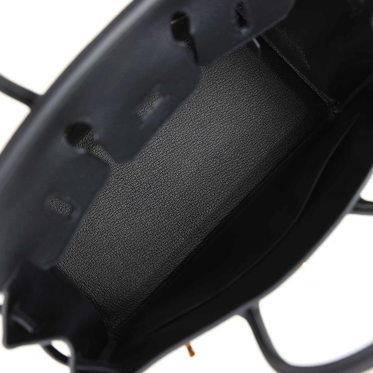 This Birkin is in Black togo leather with gold hardware, has tonal stitching, front flap, two straps with center toggle closure, clochette with lock and two keys, and double rolled handles.