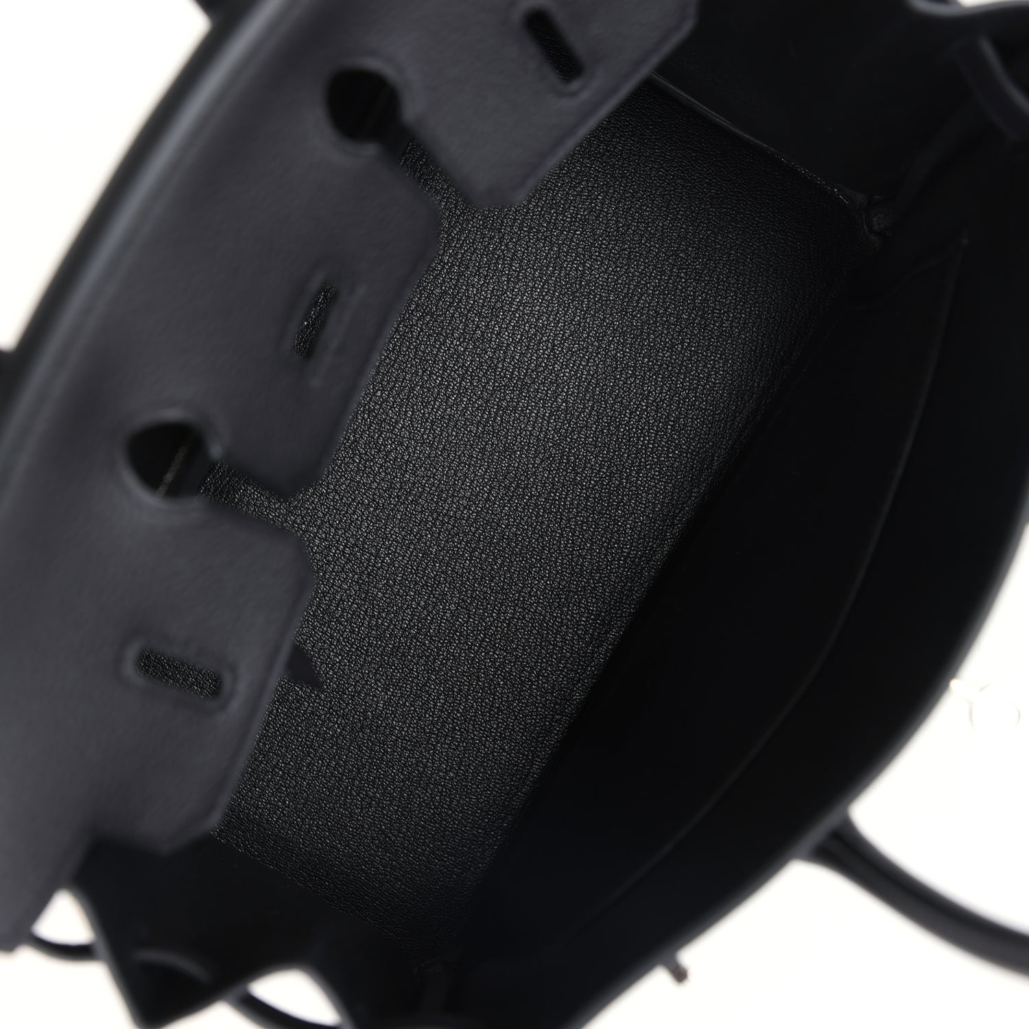The interior is lined with black chevre and has a zip pocket with an Hermes engraved zipper pull and an open pocket on the opposite side.