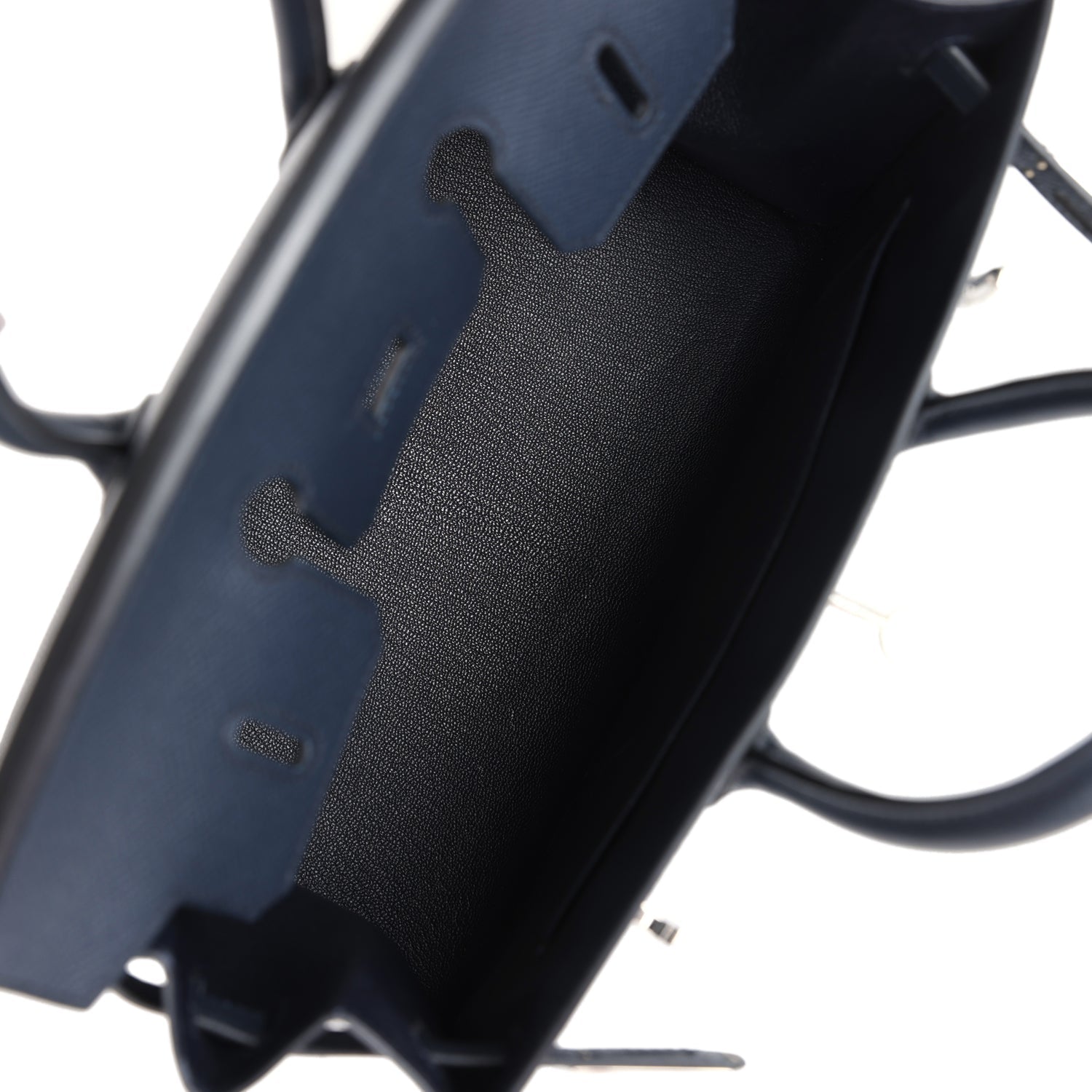 This Birkin is in Bleu Indigo epsom leather with palladium hardware and has tonal stitching, front flap, two straps with center toggle closure, clochette with lock and two keys, and double rolled handles.