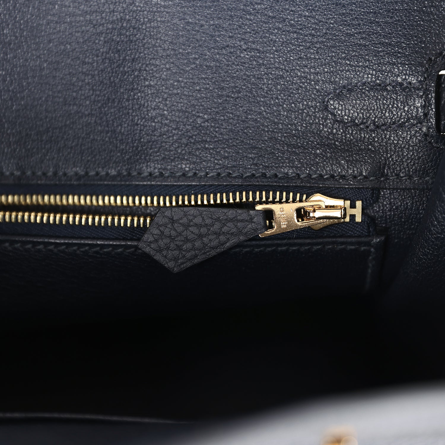 The interior is lined with Caban chevre and has a zip pocket with an Hermes engraved zipper pull and an open pocket on the opposite side.