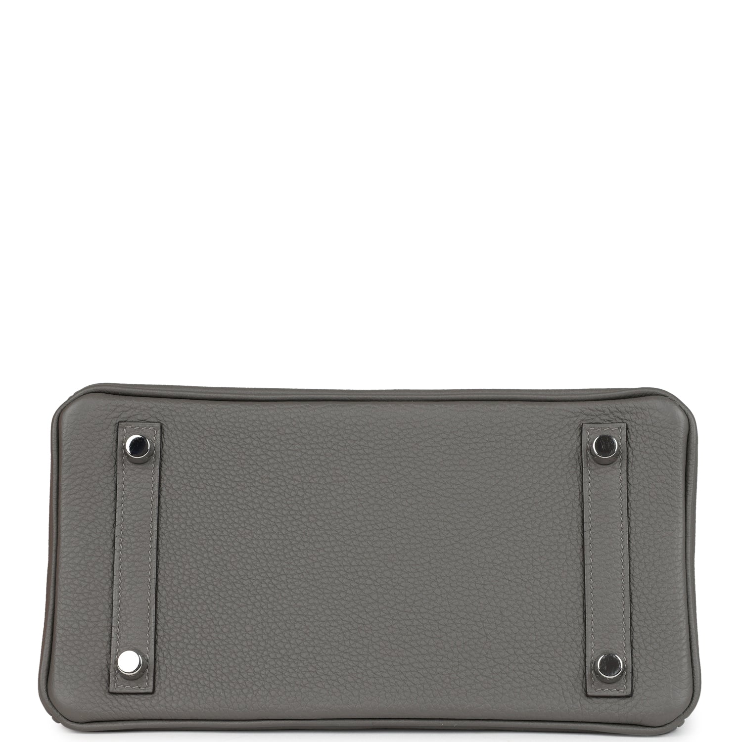 The interior is lined with Gris Meyer chevre and has a zip pocket with an Hermes engraved zipper pull and an open pocket on the opposite side.