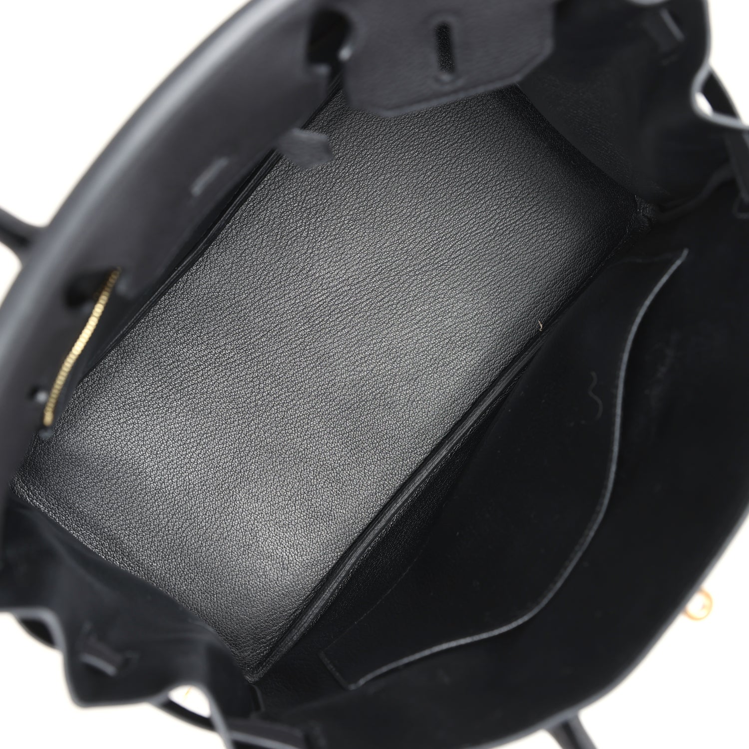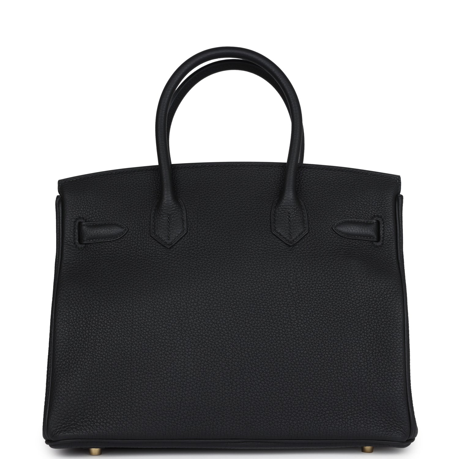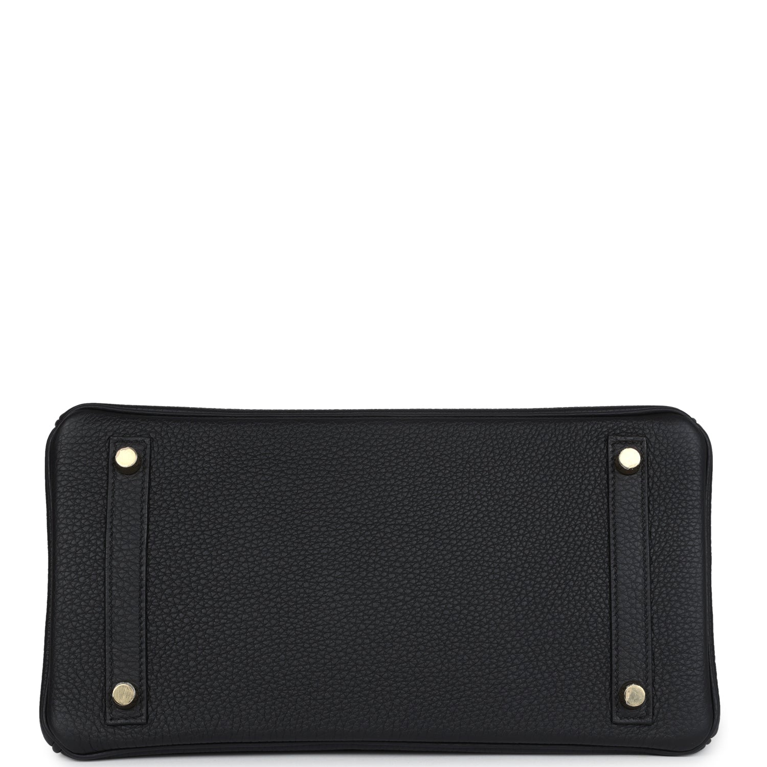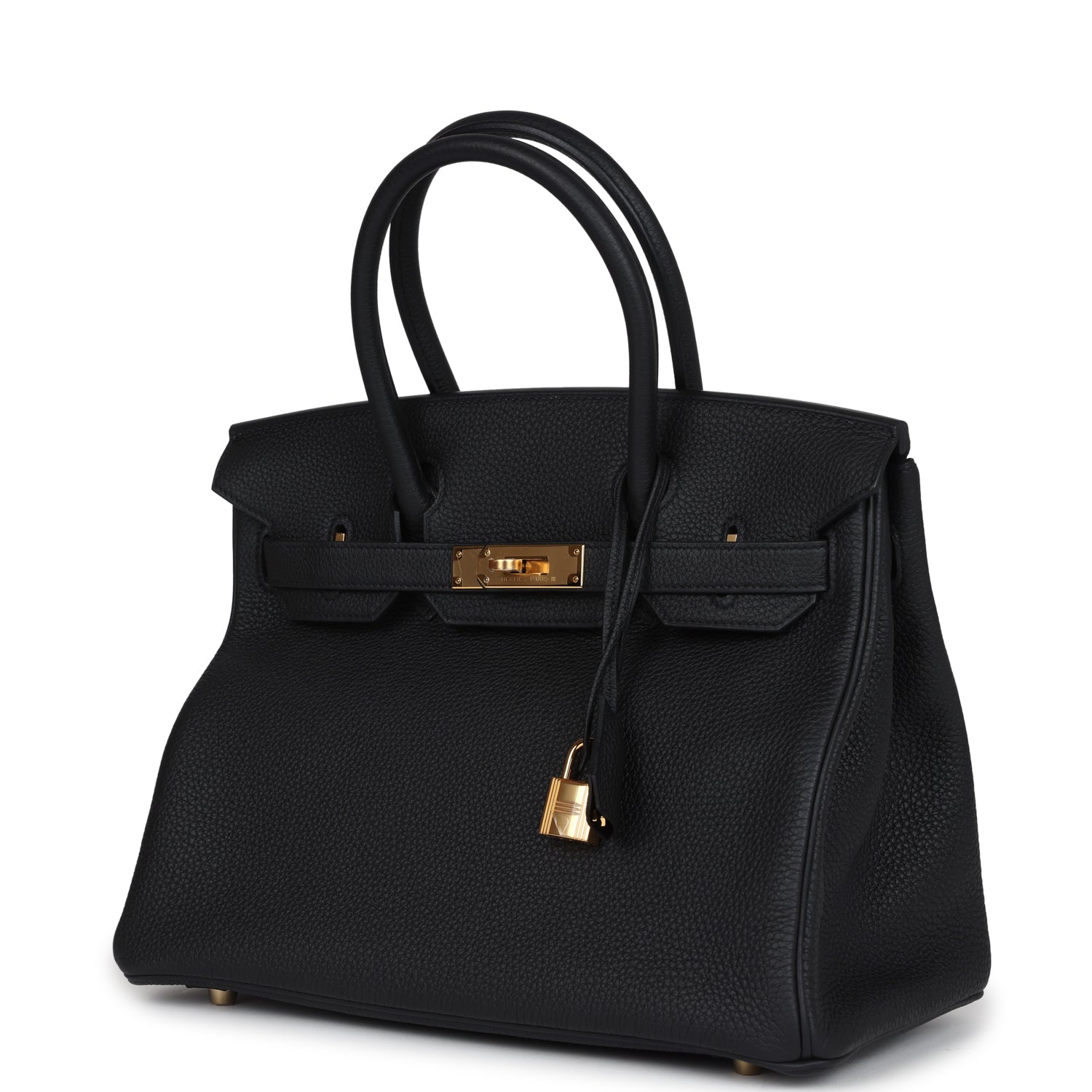 This Birkin is in Black togo leather with gold hardware and has tonal stitching, front flap, two straps with center toggle closure, clochette with lock and two keys, and double rolled handles.