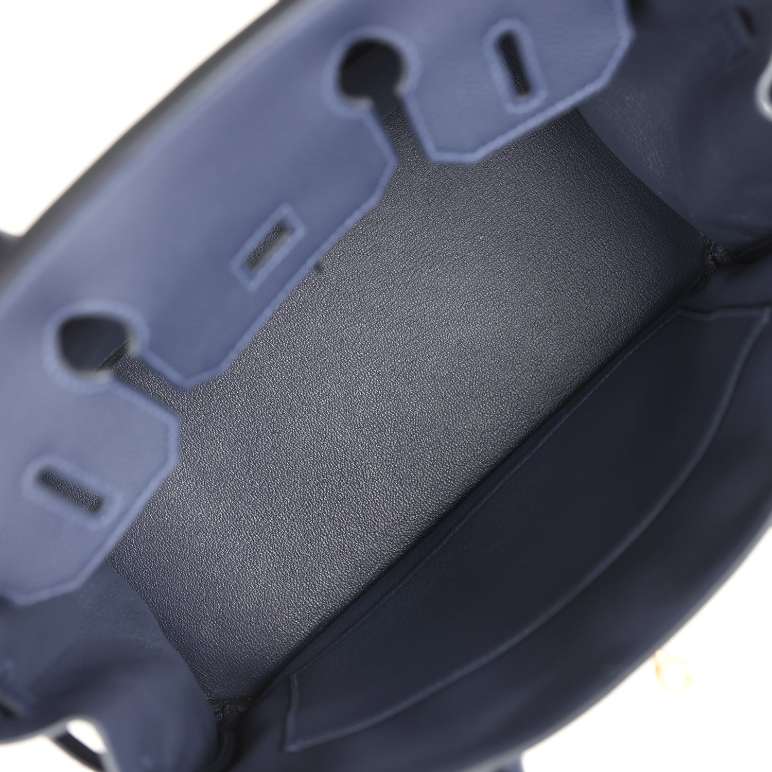 The interior is lined with Bleu Nuit chevre and has one zip pocket with an Hermes engraved zipper pull and an open pocket on the opposite side.