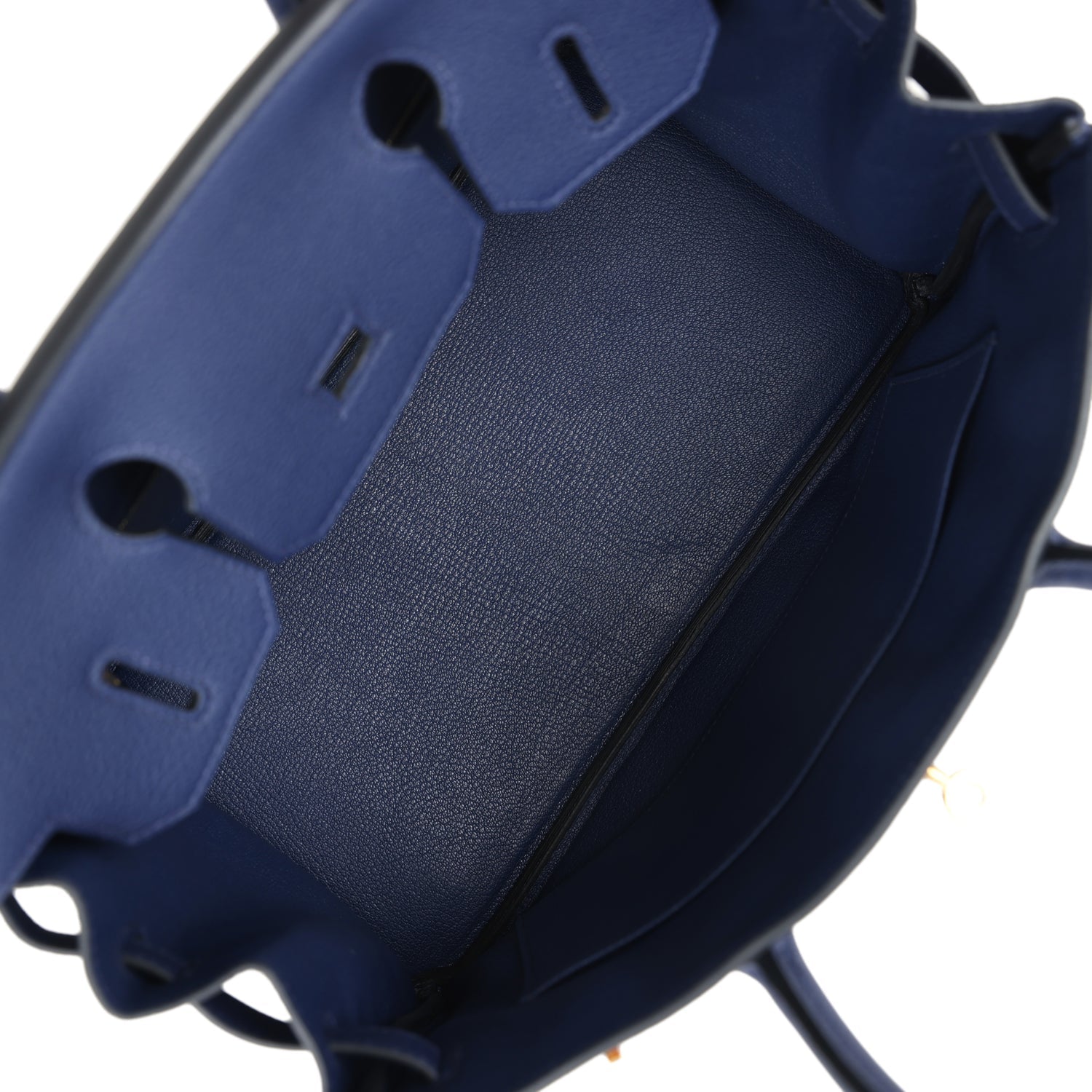 The interior is lined with Bleu Nuit chevre and has one zip pocket with an Hermes engraved zipper pull and an open pocket on the opposite side.