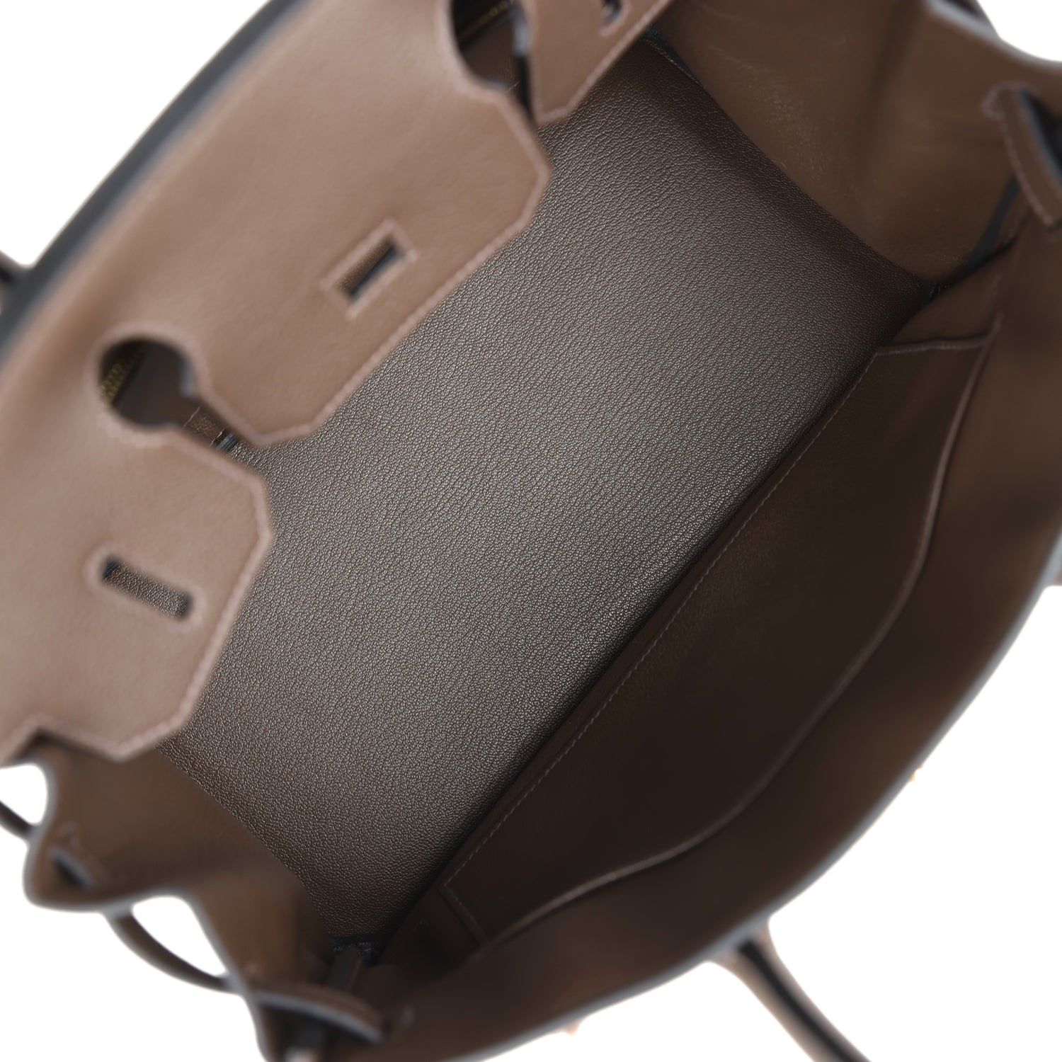 The interior is lined with Ecorce chevre and has one zip pocket with an Hermes engraved zipper pull and an open pocket on the opposite side.