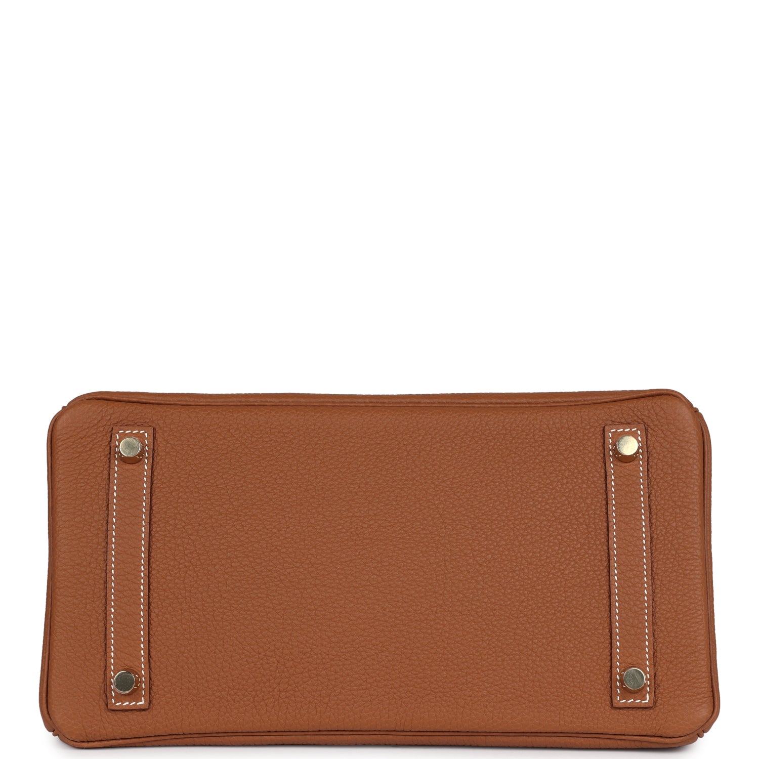 This Birkin is in Gold togo leather with gold hardware and has contrast stitching, front flap, two straps with center toggle closure, clochette with lock and two keys, and double rolled handles.