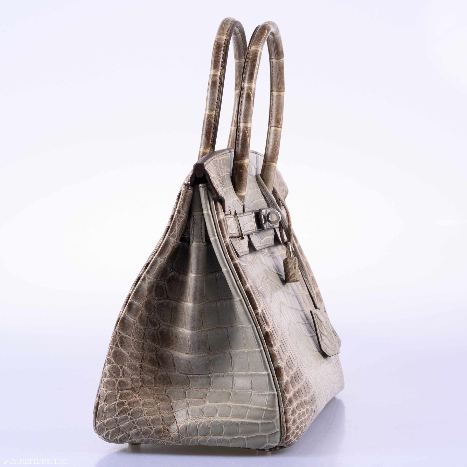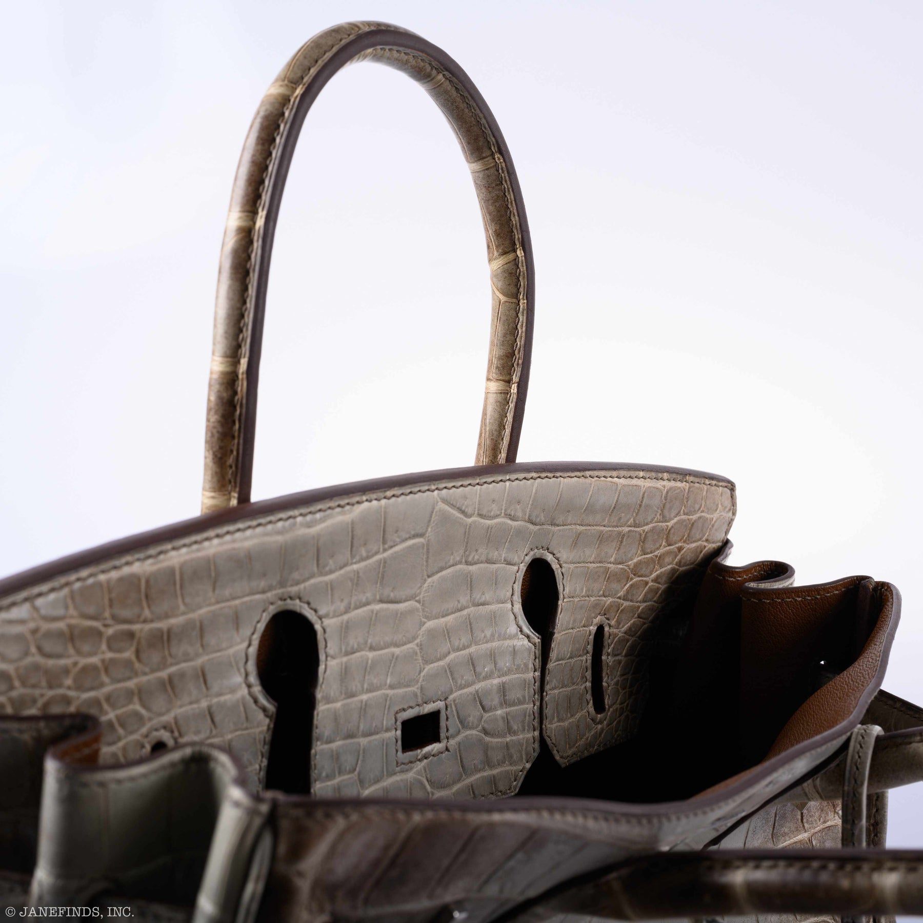 The Himalayan Birkin, named for its evocation of the famous snow-capped mountain range that crowns the world, itself crowns the range of Birkin bags in Hermès' oeuvre. Within this crown, there are a few jewels even more precious than the rest. The Gris Cendre Himalayans are particularly special examples that are produced on a level of magnitude less than the already extremely rare White Himalayans. These bags ombre from light to dark gray and typically have much more even and smooth coloring than their more heavily contrasted counterparts. What really makes the Gris Cendre Hima special is the Fauve Chevre leather interior, which adds a touch of earthy warmth to the ash-inspired bag, otherwise chilly with the cool Palladium hardware. This example, a 30cm Birkin from 2013 is in exceptional condition, and though it is far more rare and special than a White Hima, it is also far more subtle and usable, a truly rare combination.