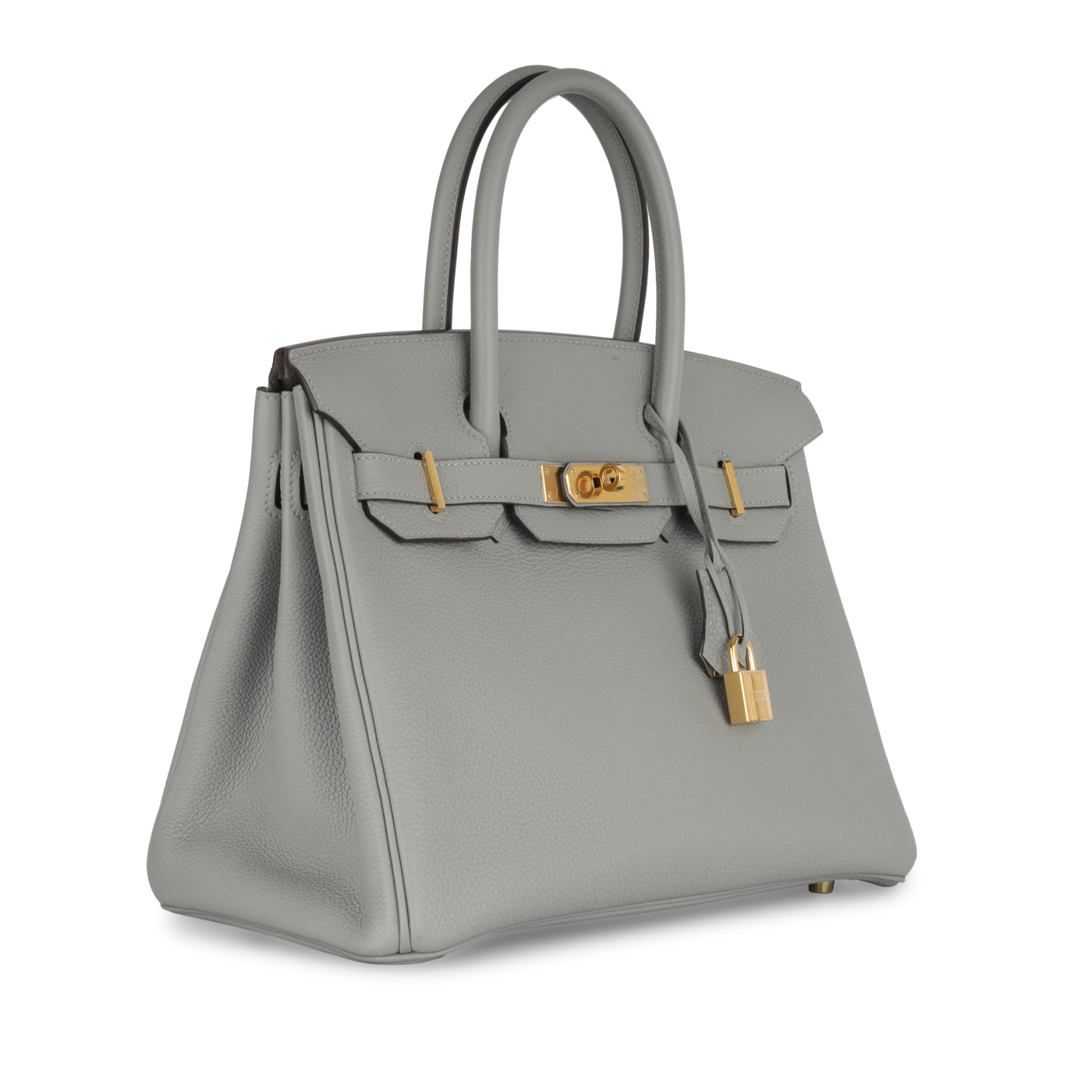 The Hermès Birkin is among the most famous bags in the world. First created in 1983 after Jean-Louis Dumas met Jane Birkin on a flight from Paris to London. In the short flight, Birkin explained that she needed a bag which was spacious enough for everything she needed to carry, with plenty of pockets as well. He sketched the first bag there and then, and the rest is history. This version of the Birkin is crafted out of the extremely rare Gris Mouette Togo leather and finished with perfectly placed Gold hardware.