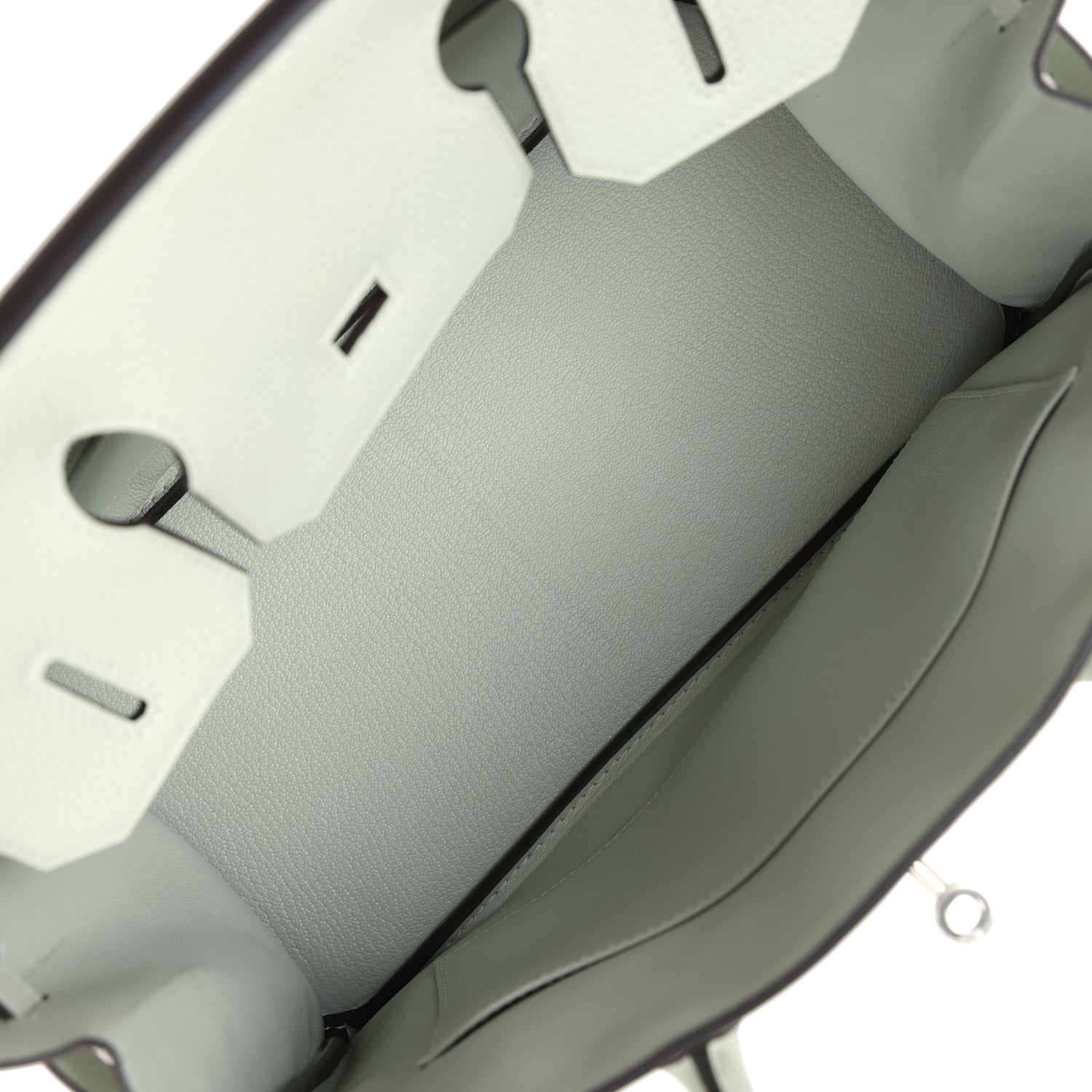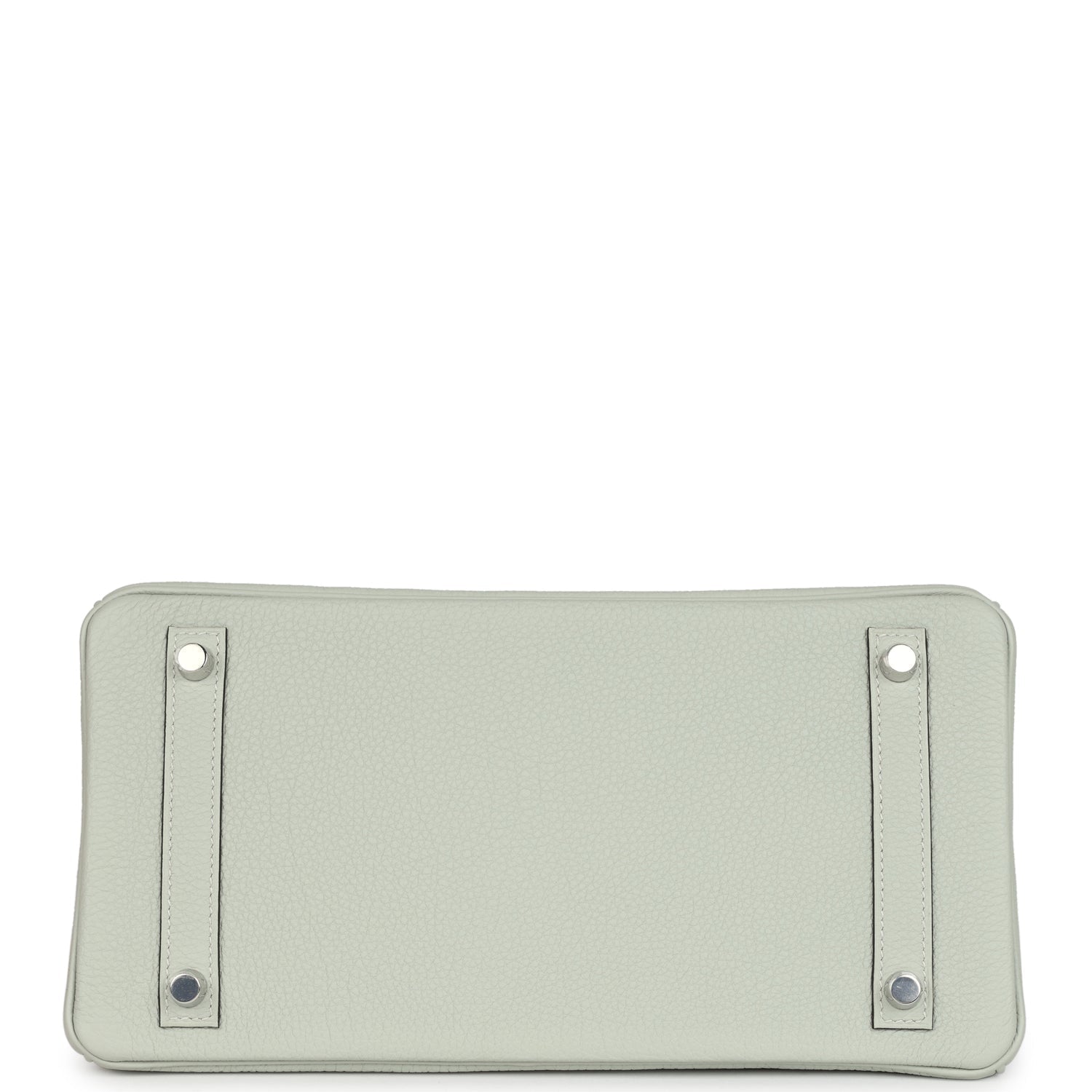 This Birkin is in Gris Neve togo leather with palladium hardware and features tonal stitching, front flap, two straps with center toggle closure, clochette with lock and two keys, and double rolled handles.