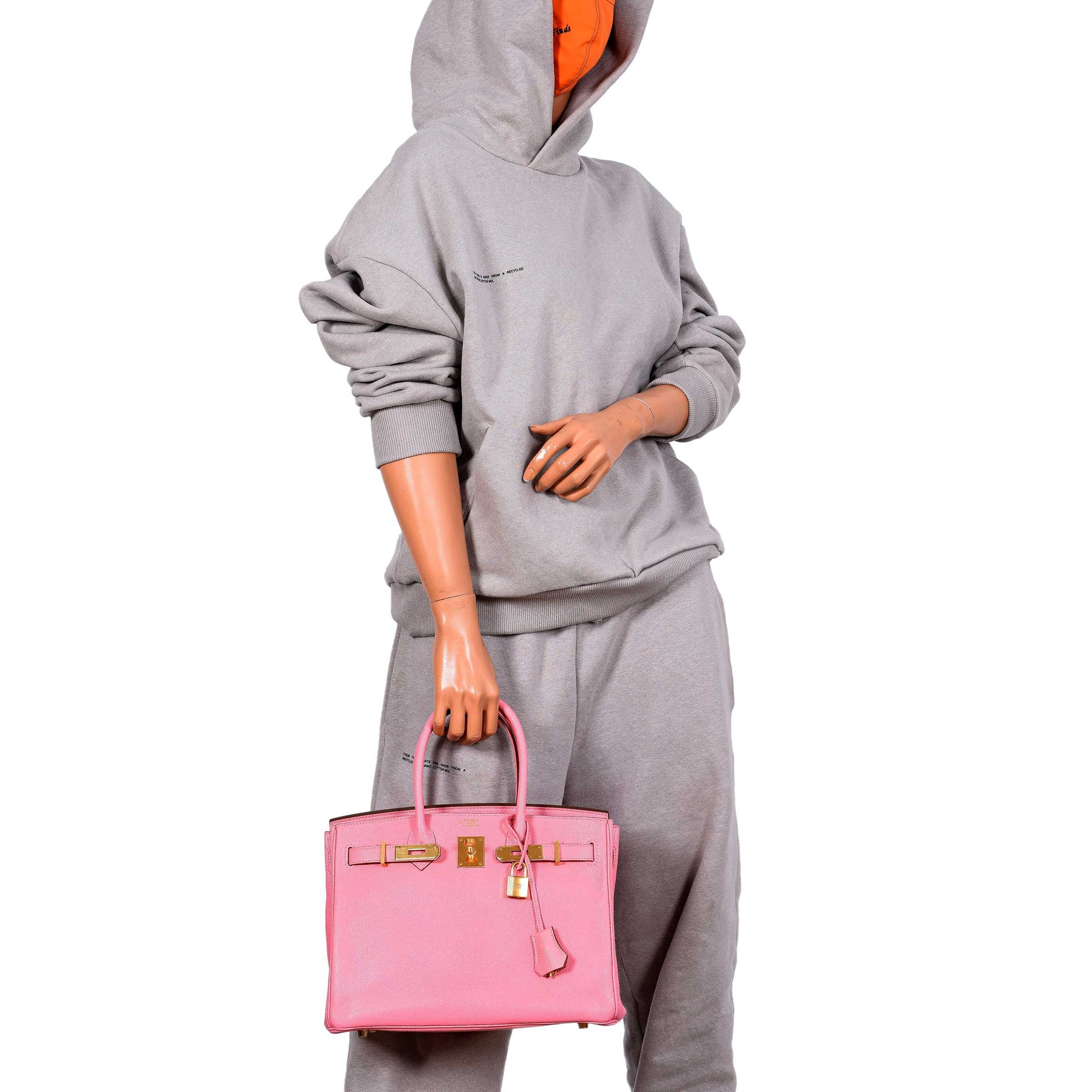 The opportunity to Special Order a bag from Hermès is only offered to the next level of VIP clients, a rare treat for those who have already managed to purchase a number of Birkin's and Kelly's from the House. These bags, which since 2006 have had the iconic horseshoe stamp, or HSS as many call it, are unique as they can be ordered with multiple colors otherwise not produced together. This 30cm example is one such HSS Birkin, done in stunning Rose Confetti Chevre goat leather with Gold Hardware, making it rare and desirable.