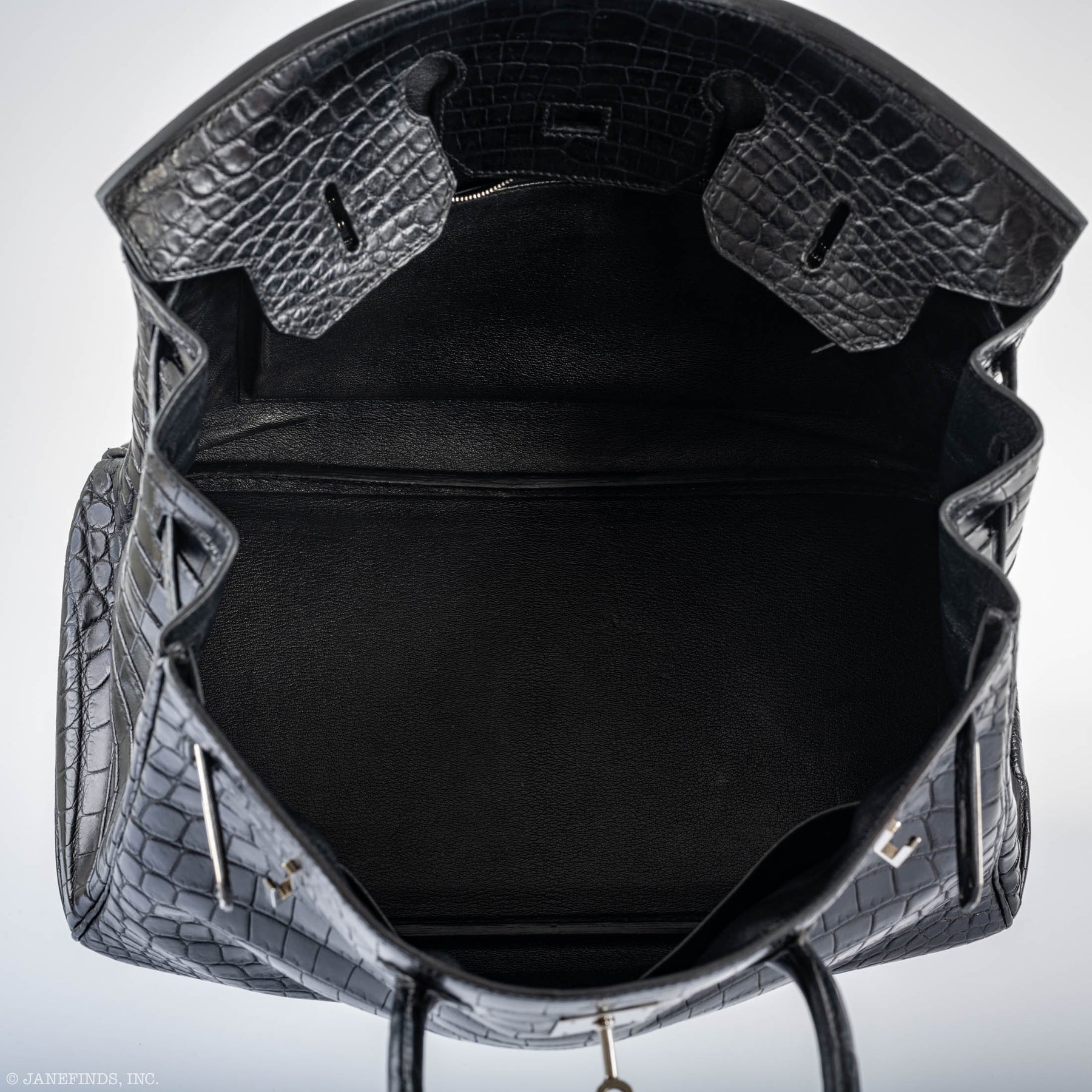The Birkin bag may be seen as the most luxurious handbag in the world, but some Birkins are more luxurious than others. This 35cm example is not just desirable for its exotic Nilo Crocodile exterior, but it is also a timeless classic done in black with a matte finish that can withstand regular use and never show it. The cool Palladium hardware is a modern pairing for this Birkin, which has been maintained in excellent condition.