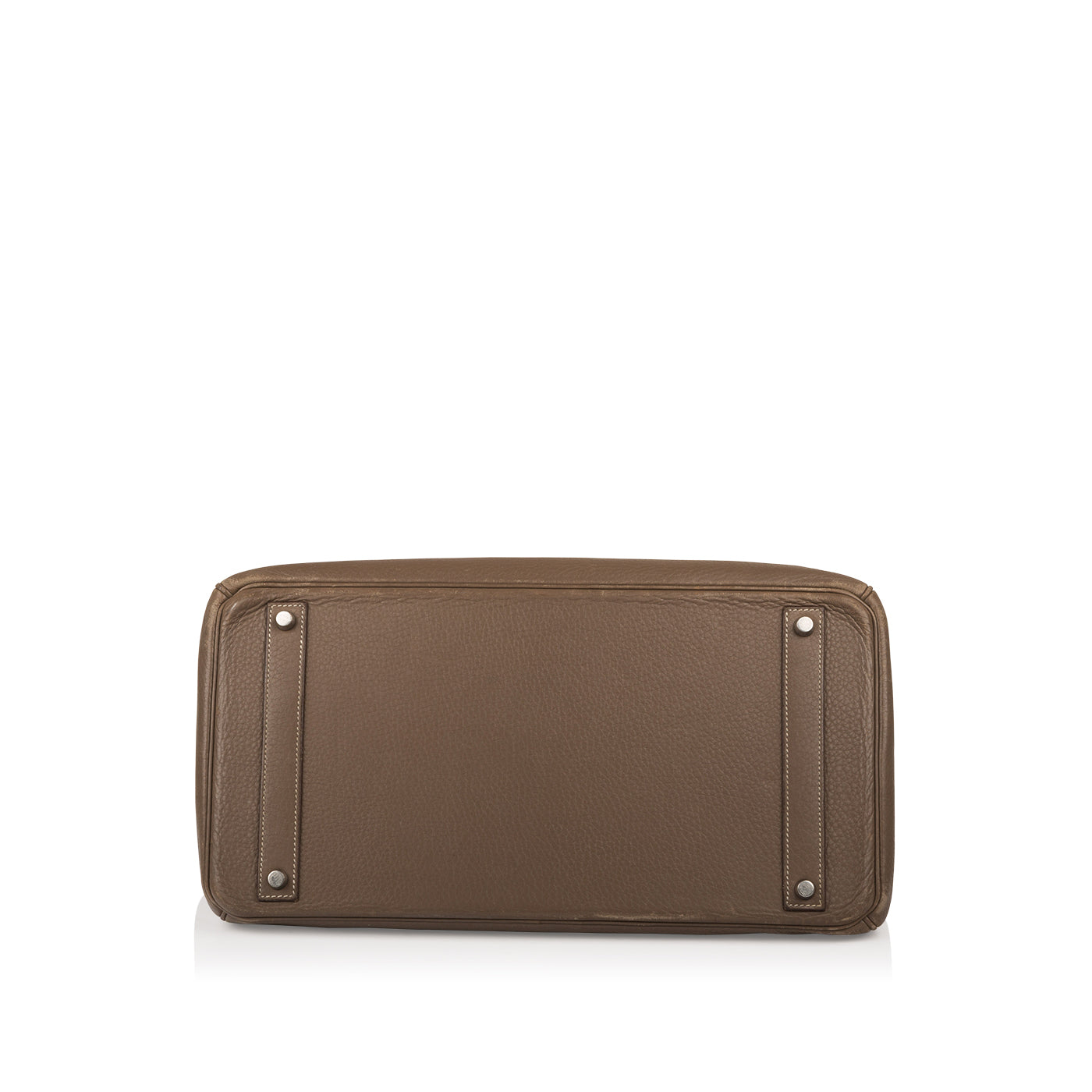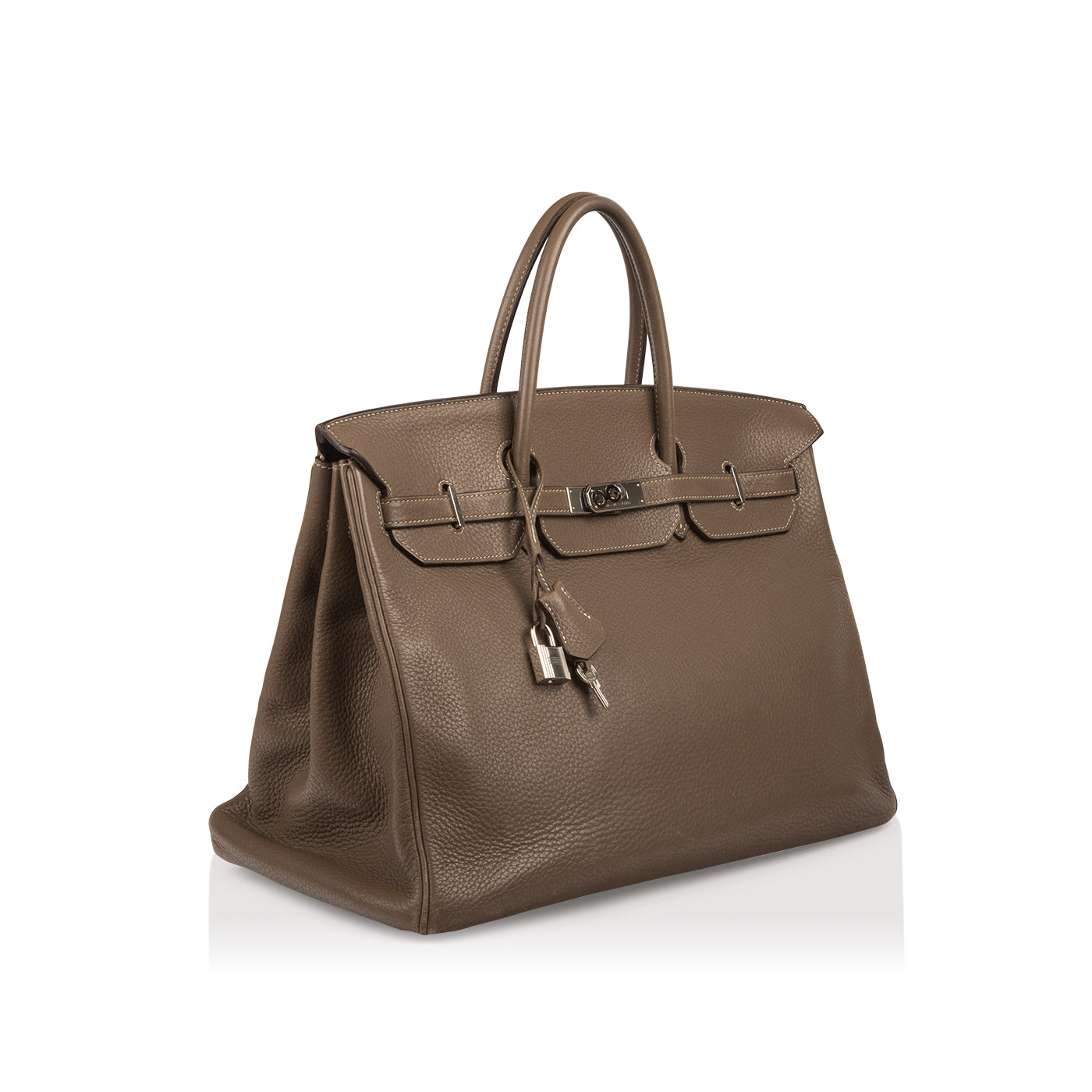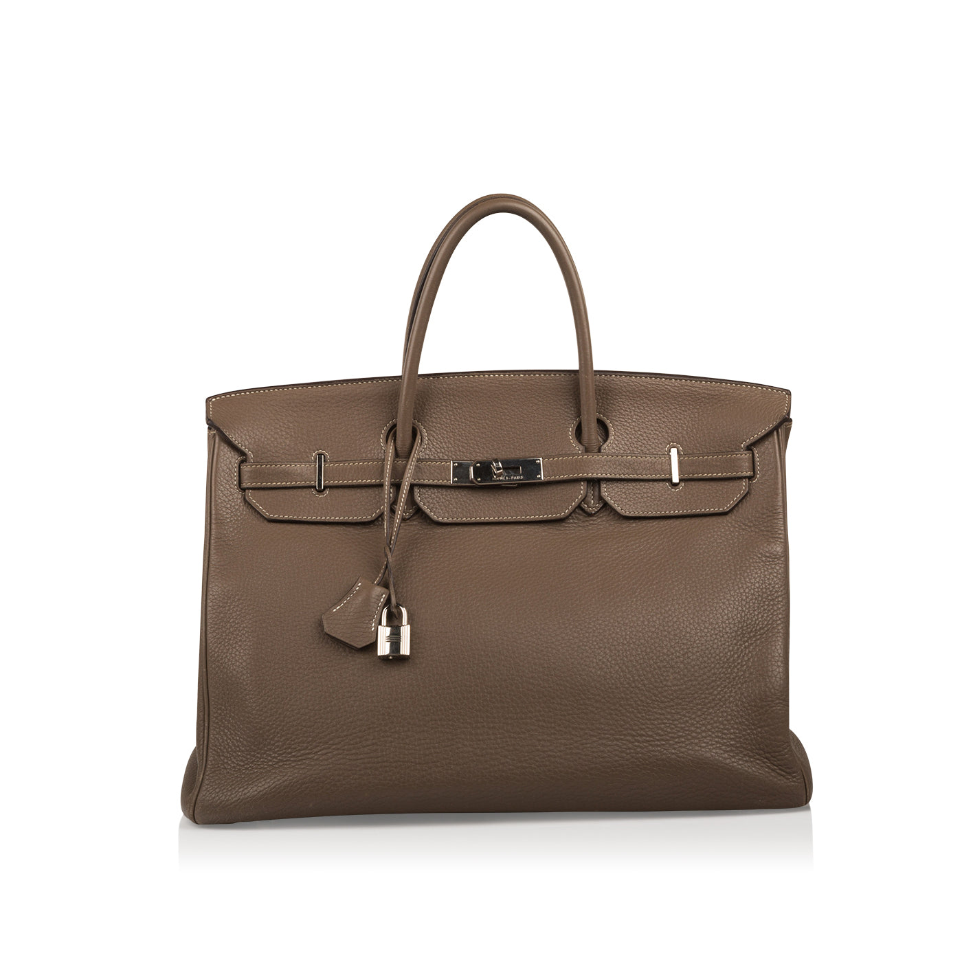 The fashion house boldly celebrates leather, sport and refined elegance; all of which are embodied by the Etoupe Birkin 40. Beautifully crafted from Etoupe togo leather and eloquently complemented with the fashion house’s iconic palladium hardware; the handbag oozes sophistication. Its exterior features their unique twist-lock close and rolled leather handles. The handbag’s interior features yet more luxurious Etouple leather lining and a very spacious storage compartment; alongside a large zip pocket and a patch pocket.