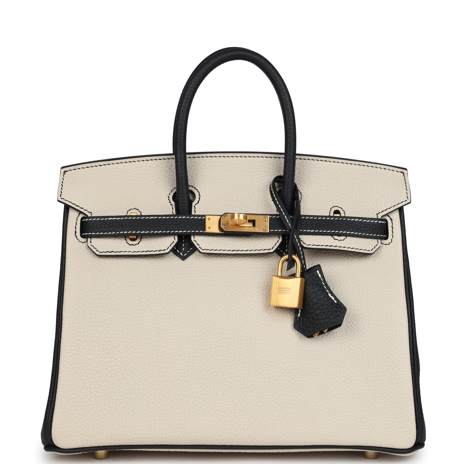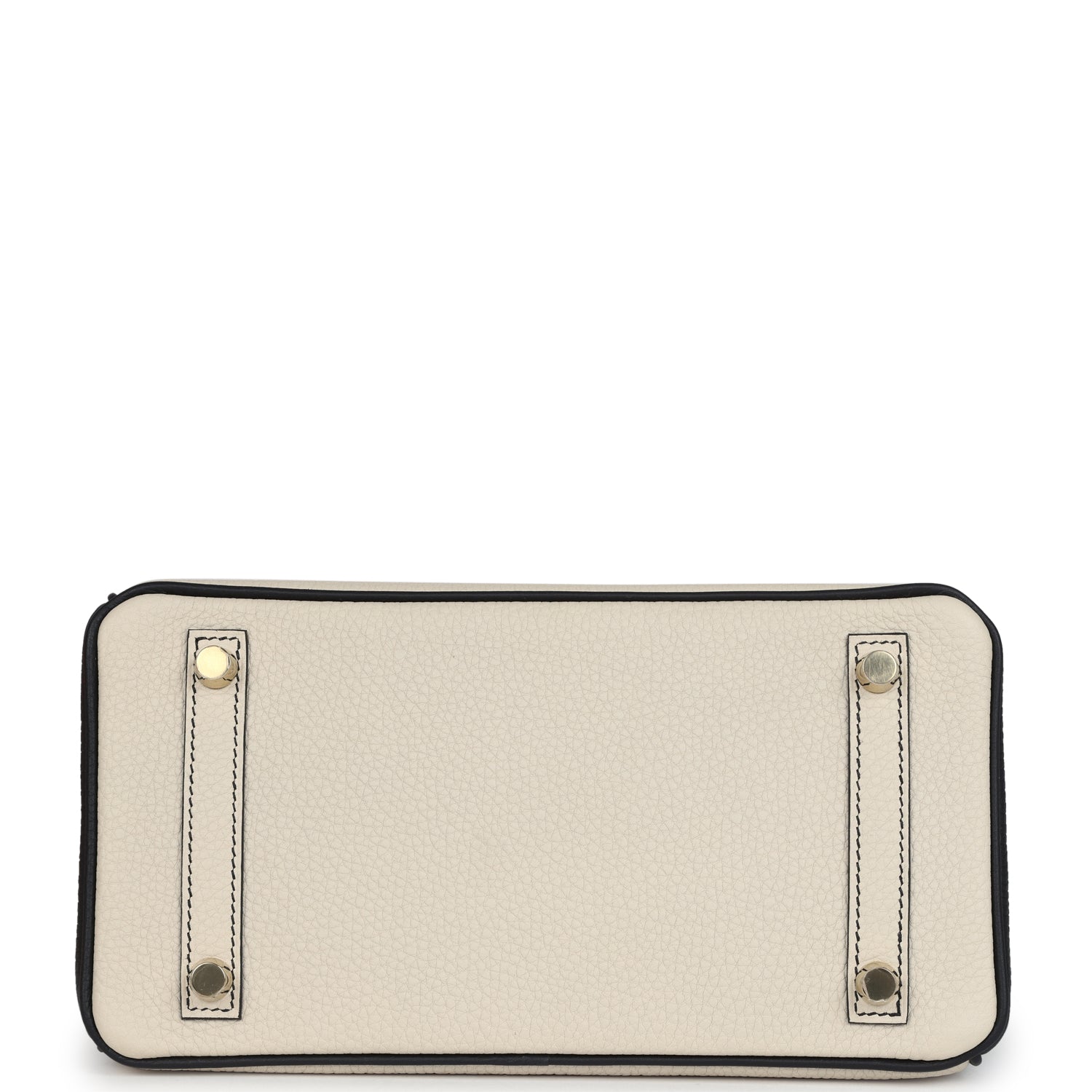 This Special Order Birkin is in Craie and Black togo leather with brushed gold hardware and has contrast stitching, front flap, two straps with center toggle closure, clochette with lock and two keys, and double rolled handles.