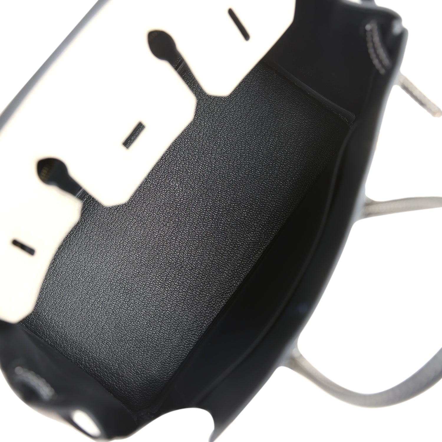 The interior is lined with Black chevre and has one zip pocket with an Hermes engraved zipper pull and an open pocket on the opposite side.