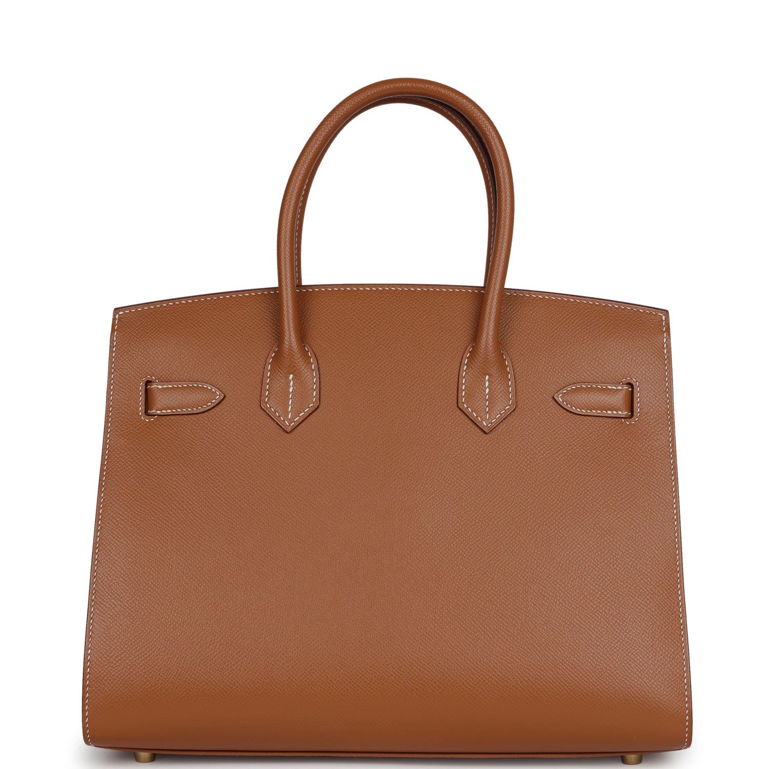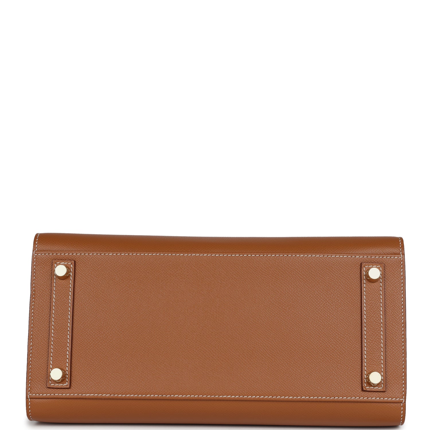 This Birkin is in Gold epsom leather with gold hardware and has contrast stitching, front flap, two straps with center toggle closure, clochette with lock and two keys, and double rolled handles.