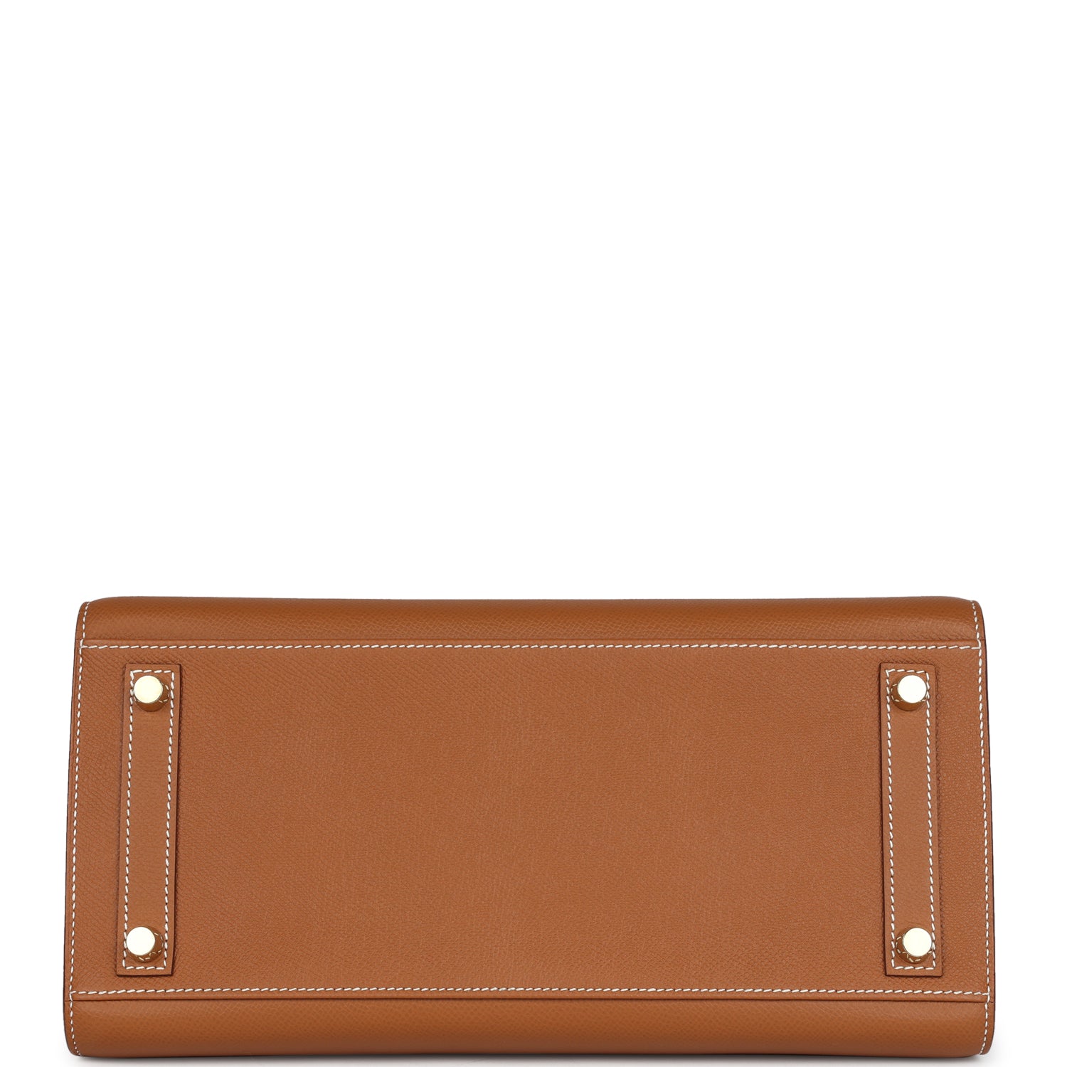 This Birkin is in Gold epsom leather with gold hardware and has contrast stitching, front flap, two straps with center toggle closure, clochette with lock and two keys, and double rolled handles.