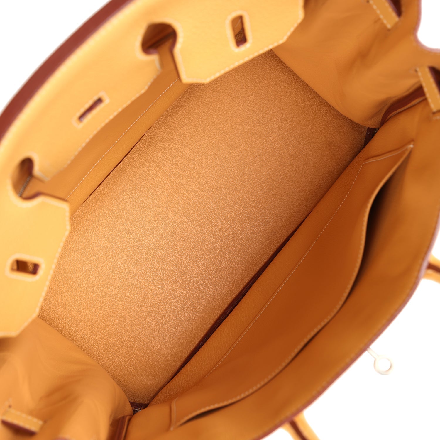 The interior is lined in Natural Sable chevre leather and features one zip pocket with Hermes engraved pull; pocket on opposite side.
