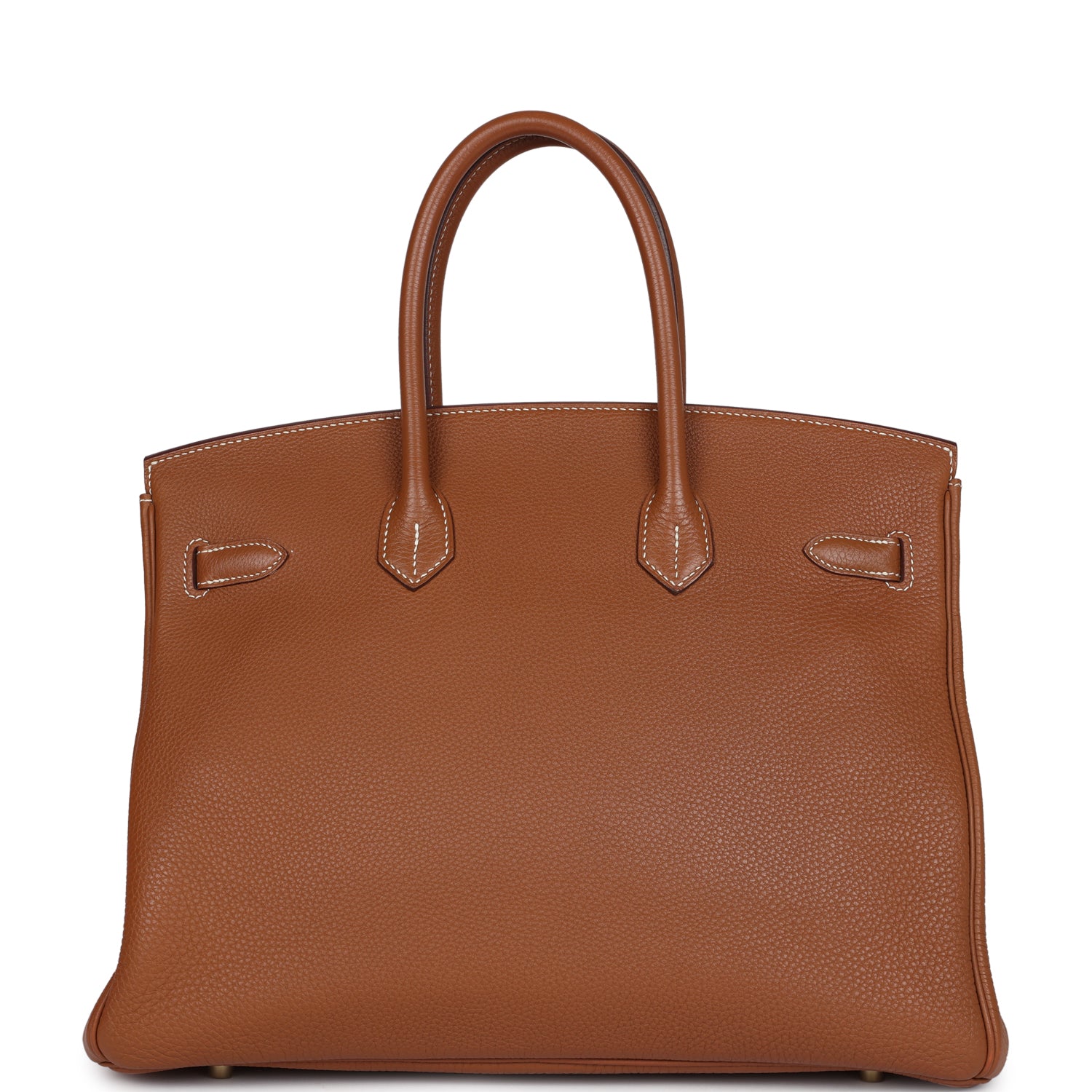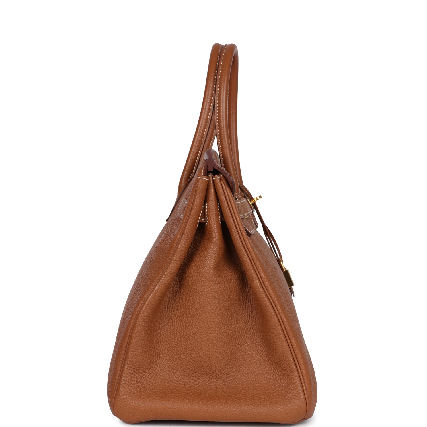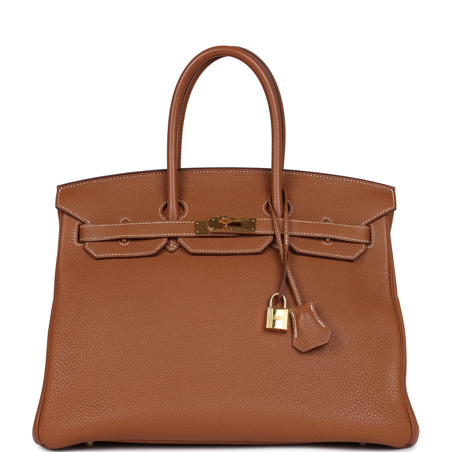 This Birkin is in Gold togo leather with gold hardware and has contrast stitching, two straps with front toggle closure, clochette with lock and two keys and double rolled handles.