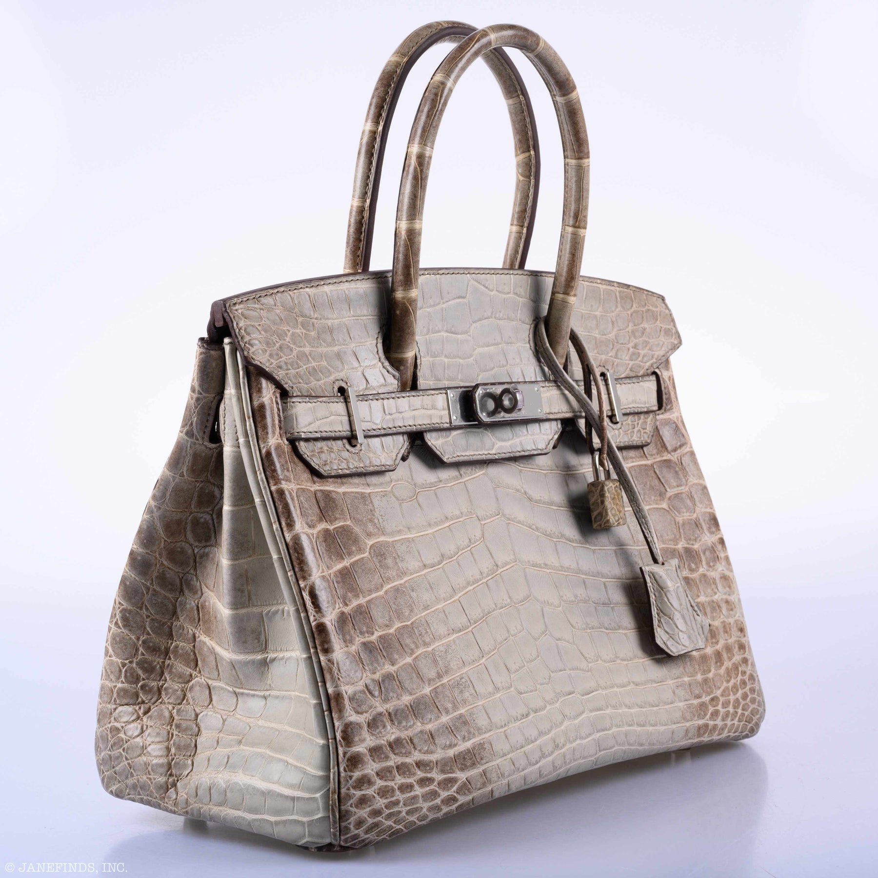 The Himalayan Birkin, named for its evocation of the famous snow-capped mountain range that crowns the world, itself crowns the range of Birkin bags in Hermès' oeuvre. Within this crown, there are a few jewels even more precious than the rest. The Gris Cendre Himalayans are particularly special examples that are produced on a level of magnitude less than the already extremely rare White Himalayans. These bags ombre from light to dark gray and typically have much more even and smooth coloring than their more heavily contrasted counterparts. What really makes the Gris Cendre Hima special is the Fauve Chevre leather interior, which adds a touch of earthy warmth to the ash-inspired bag, otherwise chilly with the cool Palladium hardware. This example, a 30cm Birkin from 2013 is in exceptional condition, and though it is far more rare and special than a White Hima, it is also far more subtle and usable, a truly rare combination.