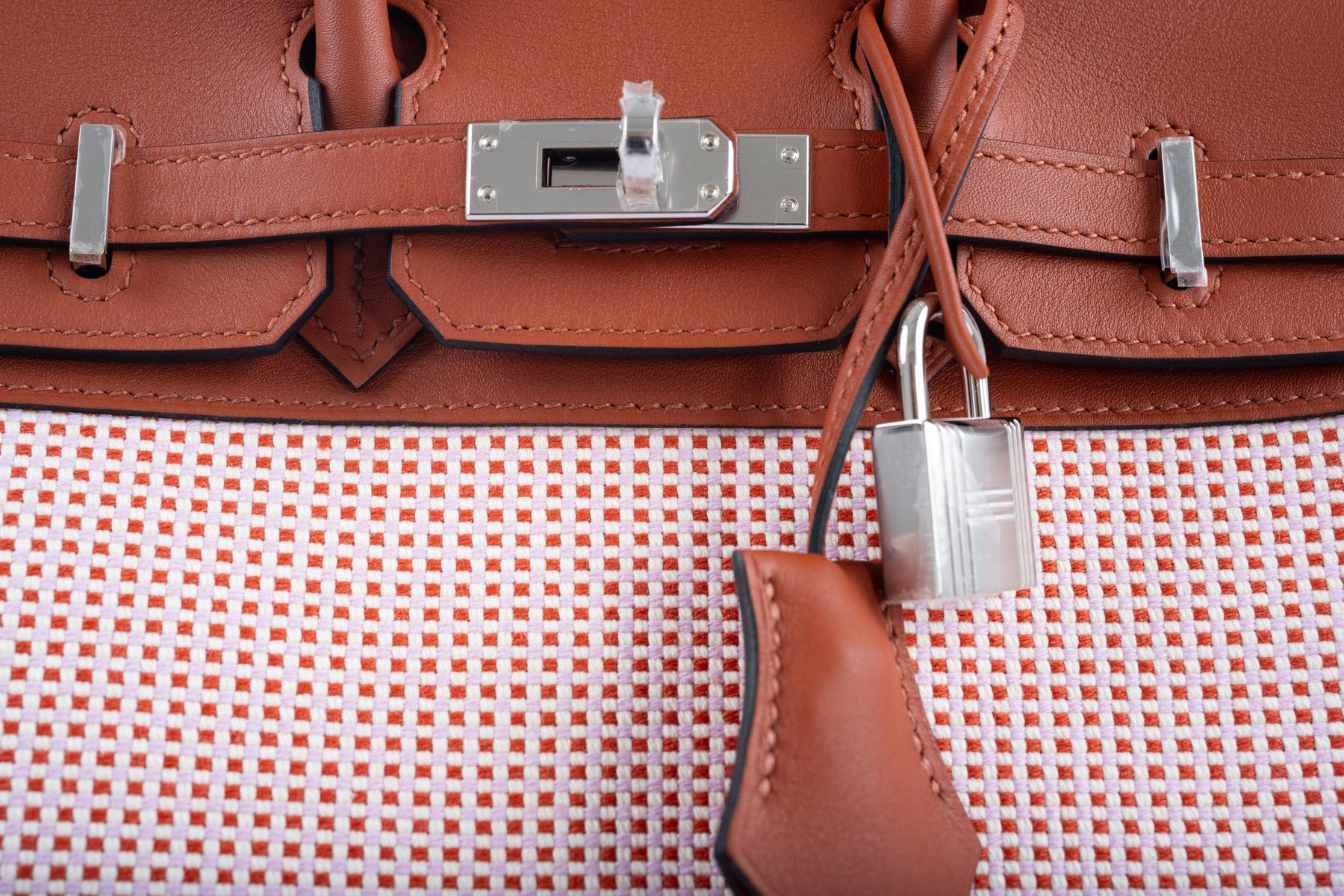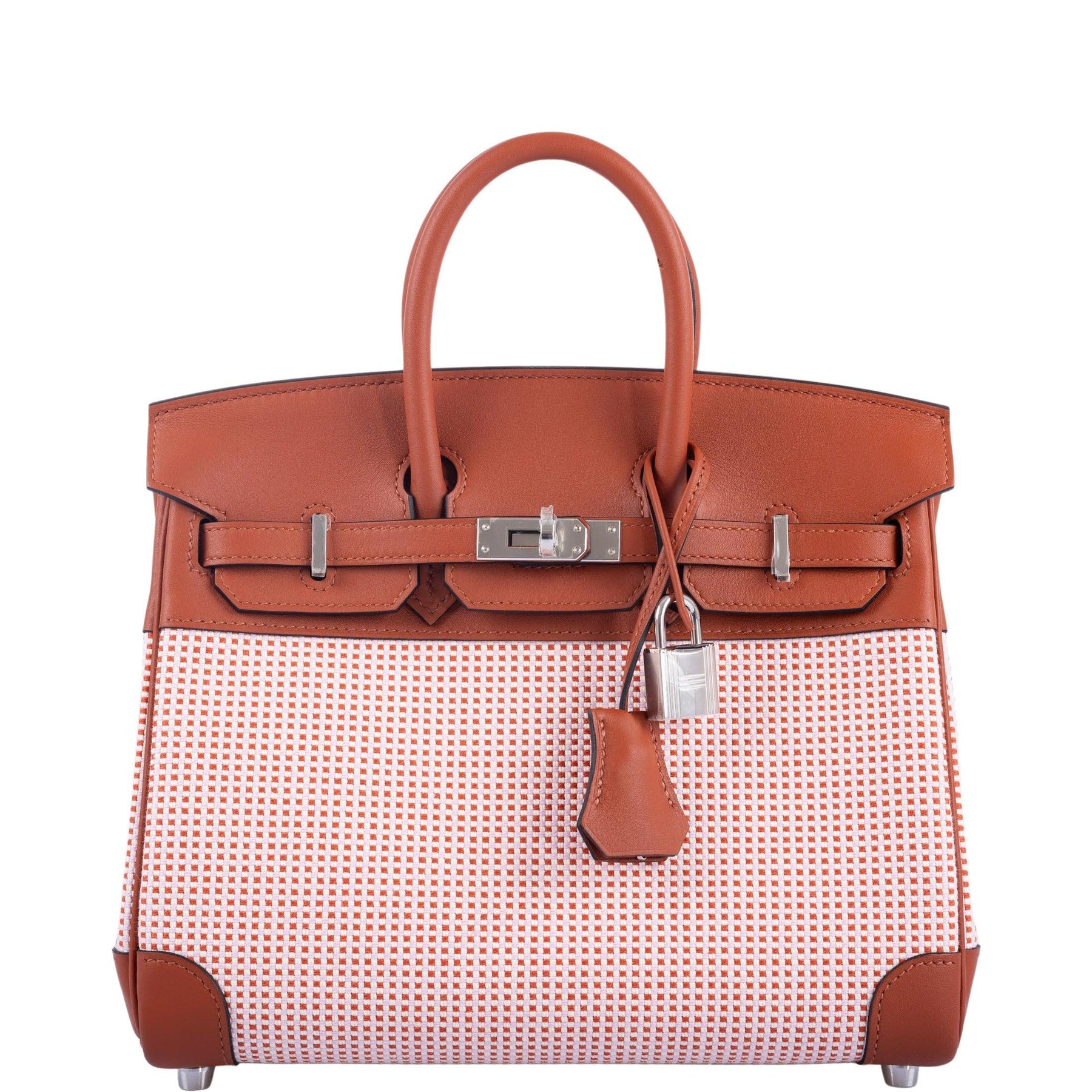 Top quality Hermes Birkin 25 Limited Edition Brique, Écru, Mauve Sylvestre Toile Quadrille & Terre Battue Swift Leather Palladium Hardware
