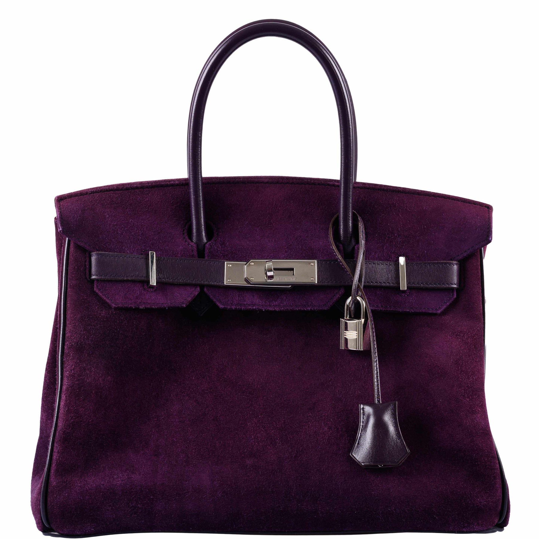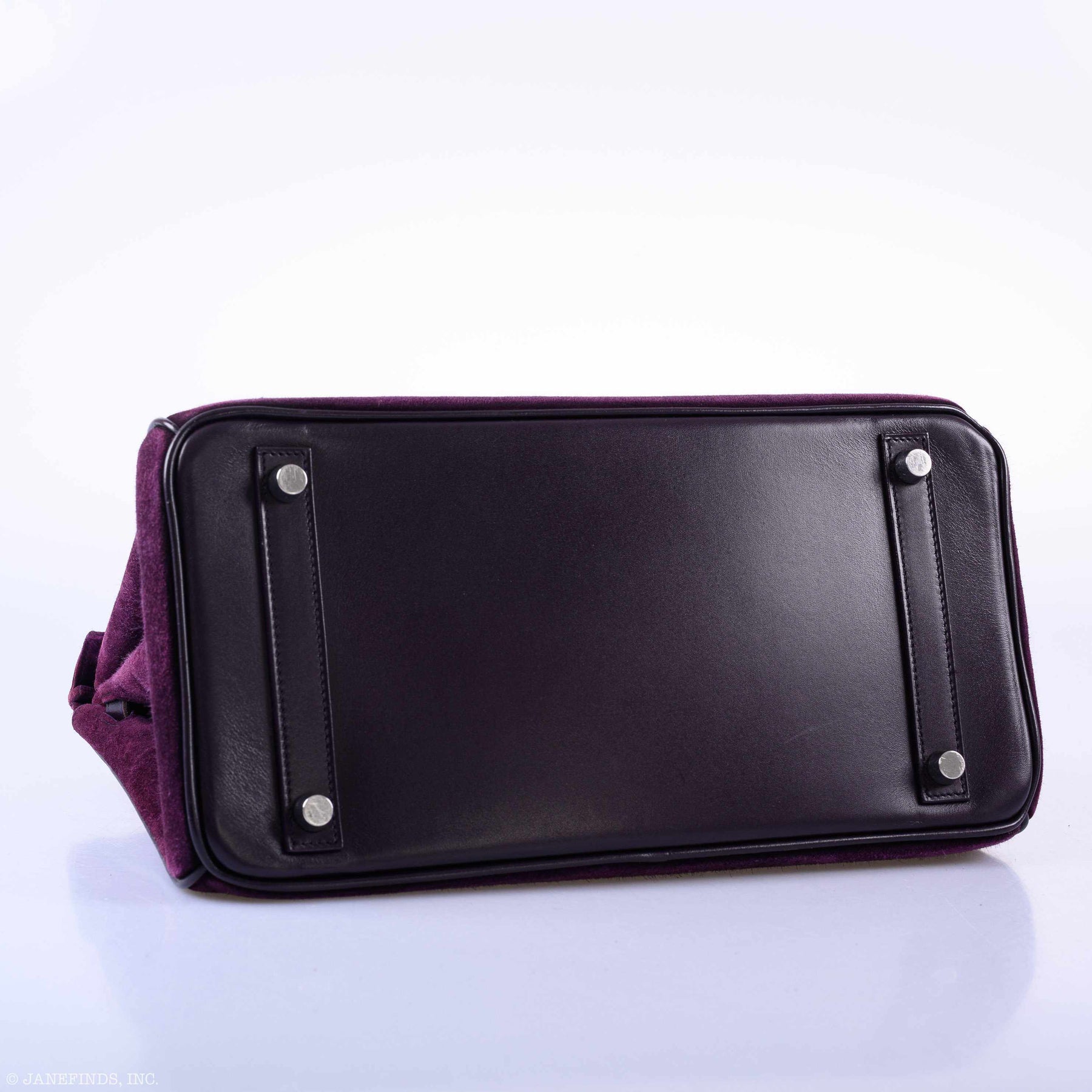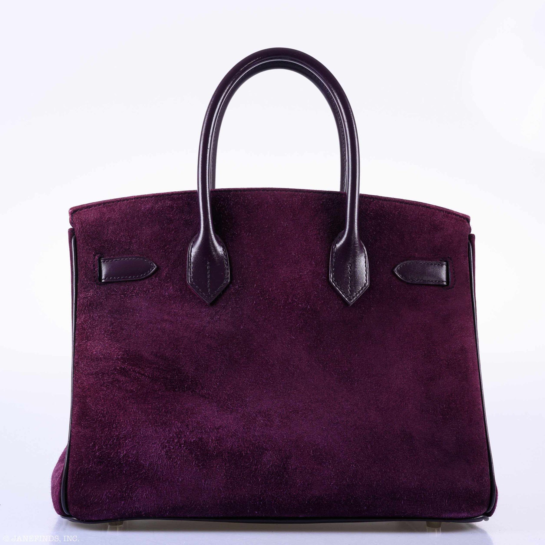 Birkin bags are known for being hard to get, always ‘sold out’ in stores, being offered even a simple leather Birkin is never . Some Birkins, though, are rare on a level that goes far and beyond the rest. These super collectible grail pieces are often made of unusual materials, like this 35cm example in Black Veau Velours Suede. All suede Birkins are rare. Grizzly Suede bags are the most common, with leather handles and trim, but Doblis Suede bags are extremely rare. This example is a 30cm Doblis Suede Birkin done in Amethyst purple with matching Swift leather handles, piping, and other accents, matched with Palladium hardware. Kept in immaculate condition, the bag maintains its original protective hardware plastic. This type of exceptional collector’s piece rarely comes to market, and it will likely be years before we see another.