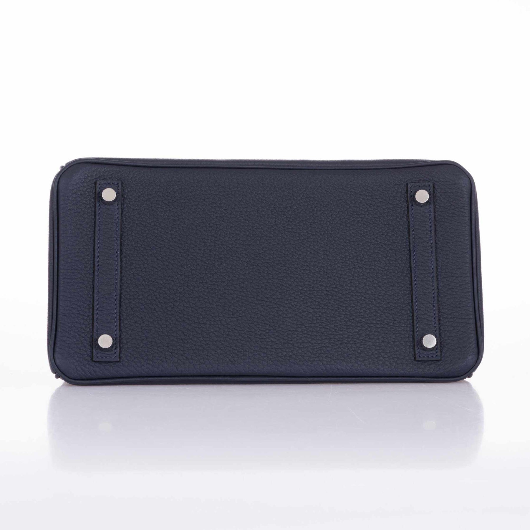 By far the most sought-after client color request that we cannot fill is a true navy blue. Finally, Hermès has released Bleu Nuit (Blue Night), a rich jewel-toned navy that is in our opinion one of the best blue's ever produced from Hermès. In an even and fine-grained Togo that is scratch-resistant. Comes with keys, lock, clochette, a sleeper for the bag, rain protector, and Hermès box.
