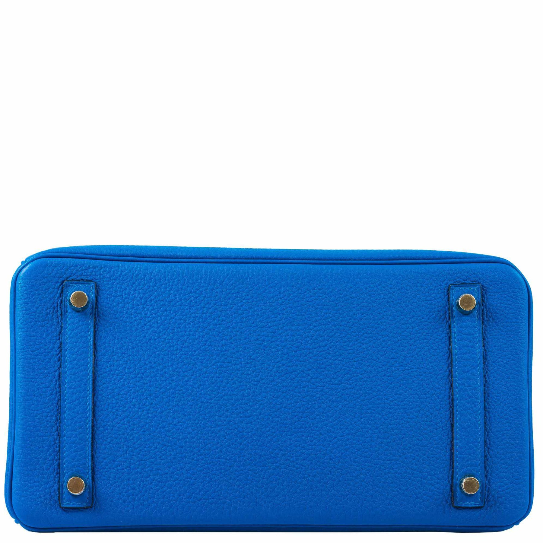 Stunning bright rich Blue Zellige 30cm with Gold hardware. Comes with lock, keys, clochette, sleepers, raincoat and signature Hermès box.
