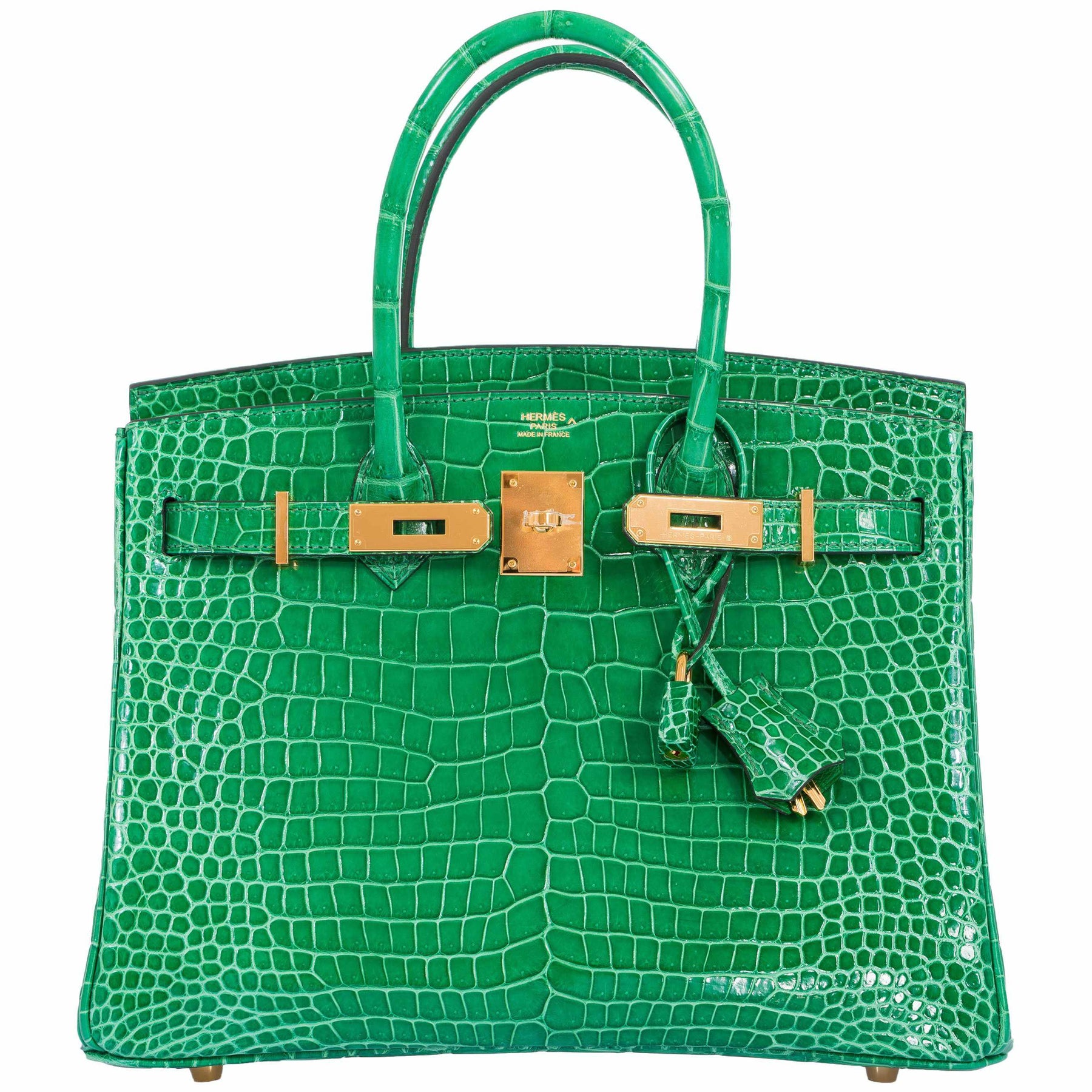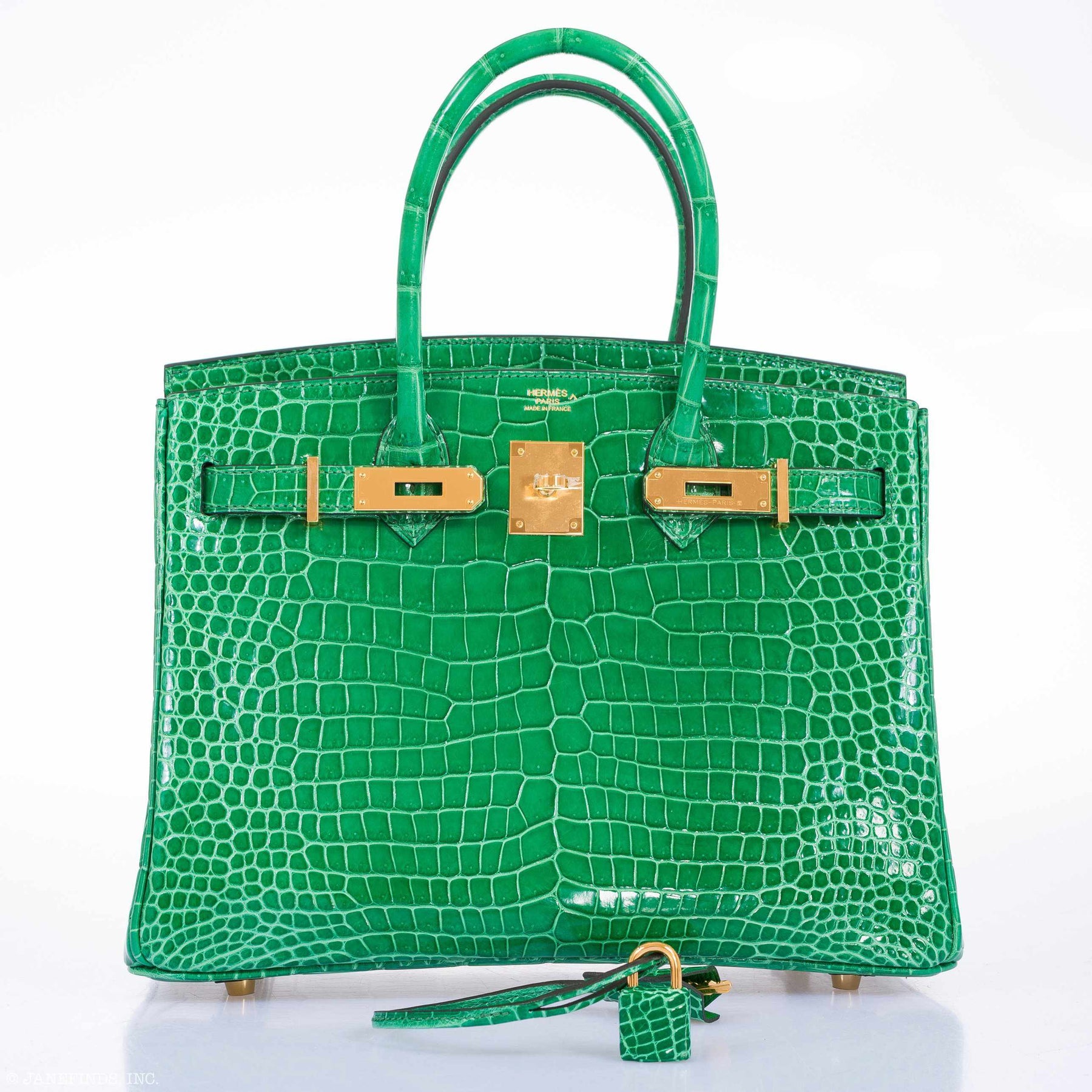 A stunner from Hermès and only on JaneFinds… An extremely rare find, stunning Cactus Green Prosus Crocodile 30cm Birkin! A statement piece, collector worthy - Investment Bag.
