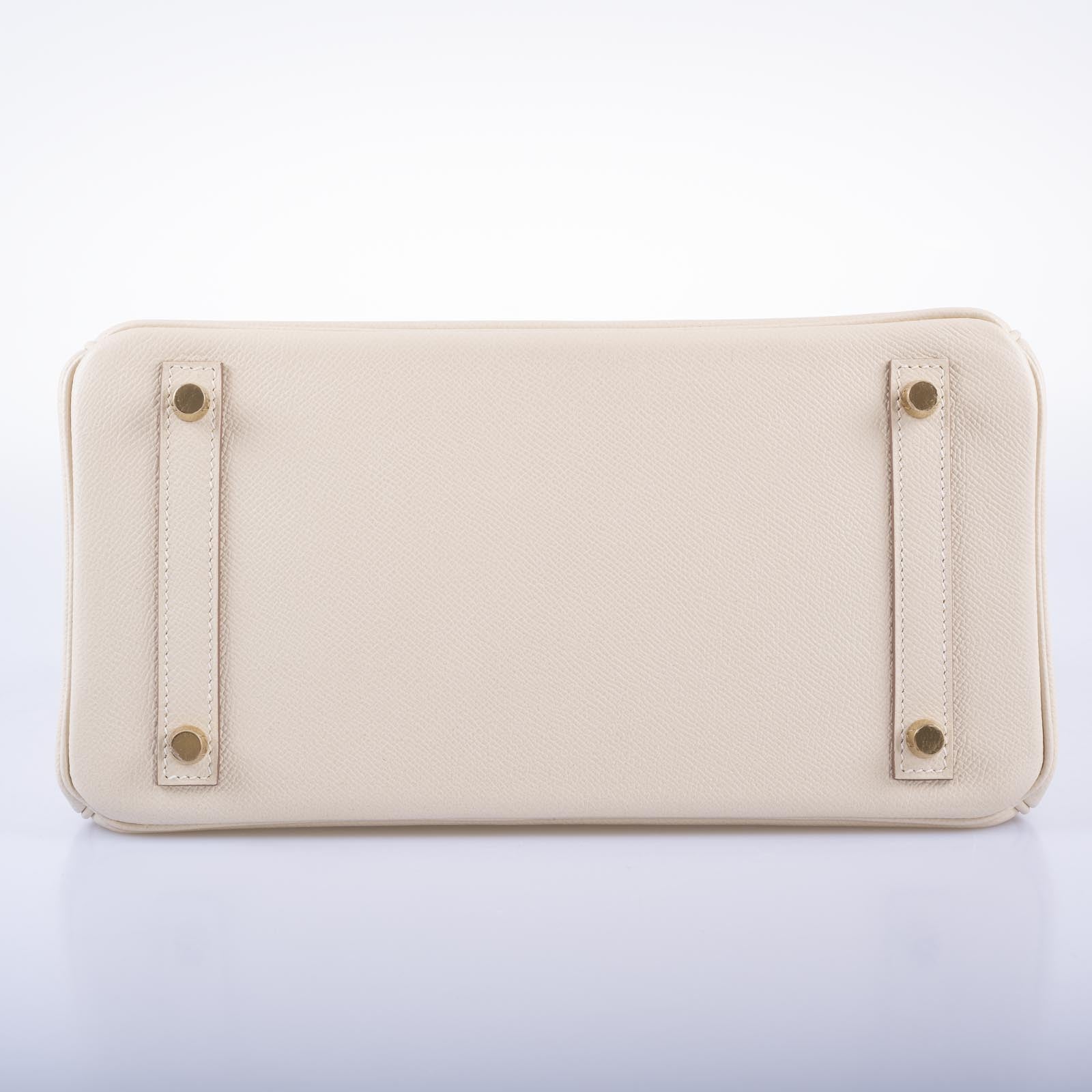 Hermès has many spectacular and popular neutral shades and continues to produce more each year. One shade that has proven its popularity over the years is Craie. Translating to ‘chalk’ in French, Craie was first seen in 2015 and has remained at the top of many Hermès lovers’ wish lists ever since. The delicate off-white has just a touch of warmth to it that is accentuated here by the warm Gold hardware. This 30cm Birkin is an ideal neutral, both bright and soft, and maintained in store-fresh condition.