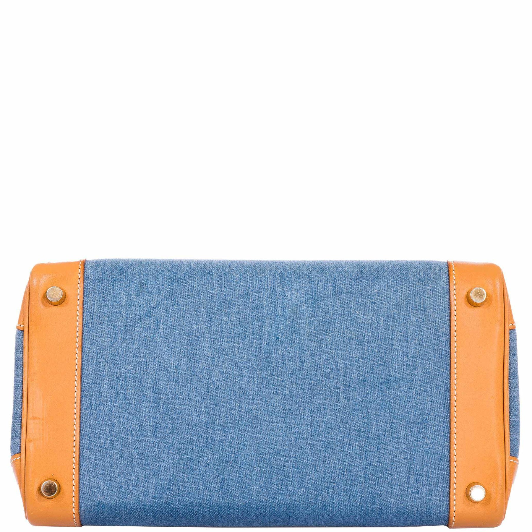 This bag is done in Vache Naturelle leather with an unusual blue denim body. It features two rolled leather handles, a flap and turnlock closure, and Gold hardware. Hermès has a long history of producing Canvas Birkins, though mainly in the 35cm and 40cm sizes, and most were produced in the 1990's and early 2000's, so finding a 30cm Birkin with denim from 2009 is very rare. The leather trim on this bag is Vache Naturelle, which is the sister heritage leather to Barenia; similar in look and marked by the foil-free Hermès brand stamp, Vache Naturelle is stiffer and less likely to darken than Barenia. This bag is lined with matching Chevre leather with one slip pocket and one zip pocket. It includes the lock, two keys, and a matching clochette.