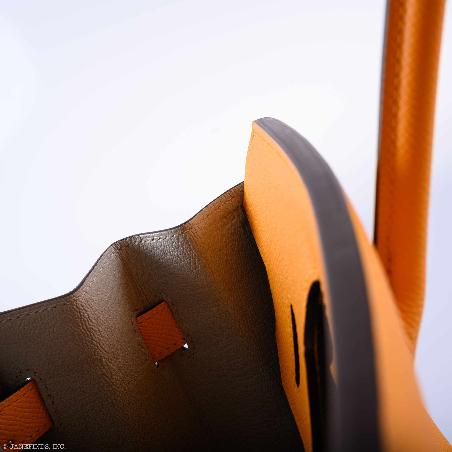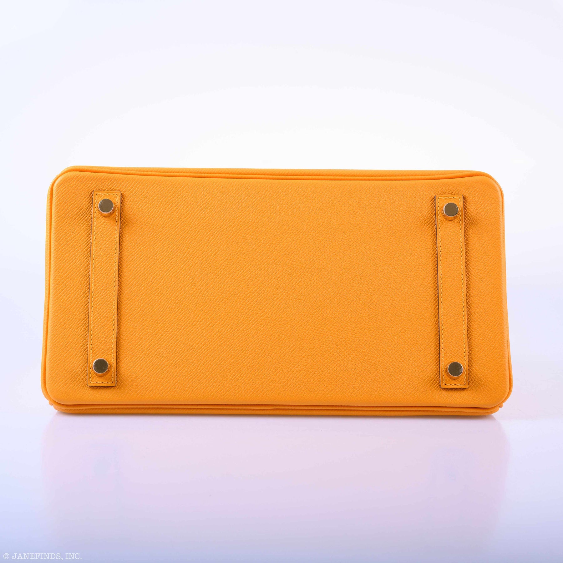 The gorgeous Jaune d'Or is now discontinued from at Hermès and is by special order only as an HSS (Horse Shoe Stamp). A superb combination of color and design. The interior is lined with Jaune d'Or Chevre and has one zip pocket with an Hermès engraved zipper pull and an open pocket on the opposite side.