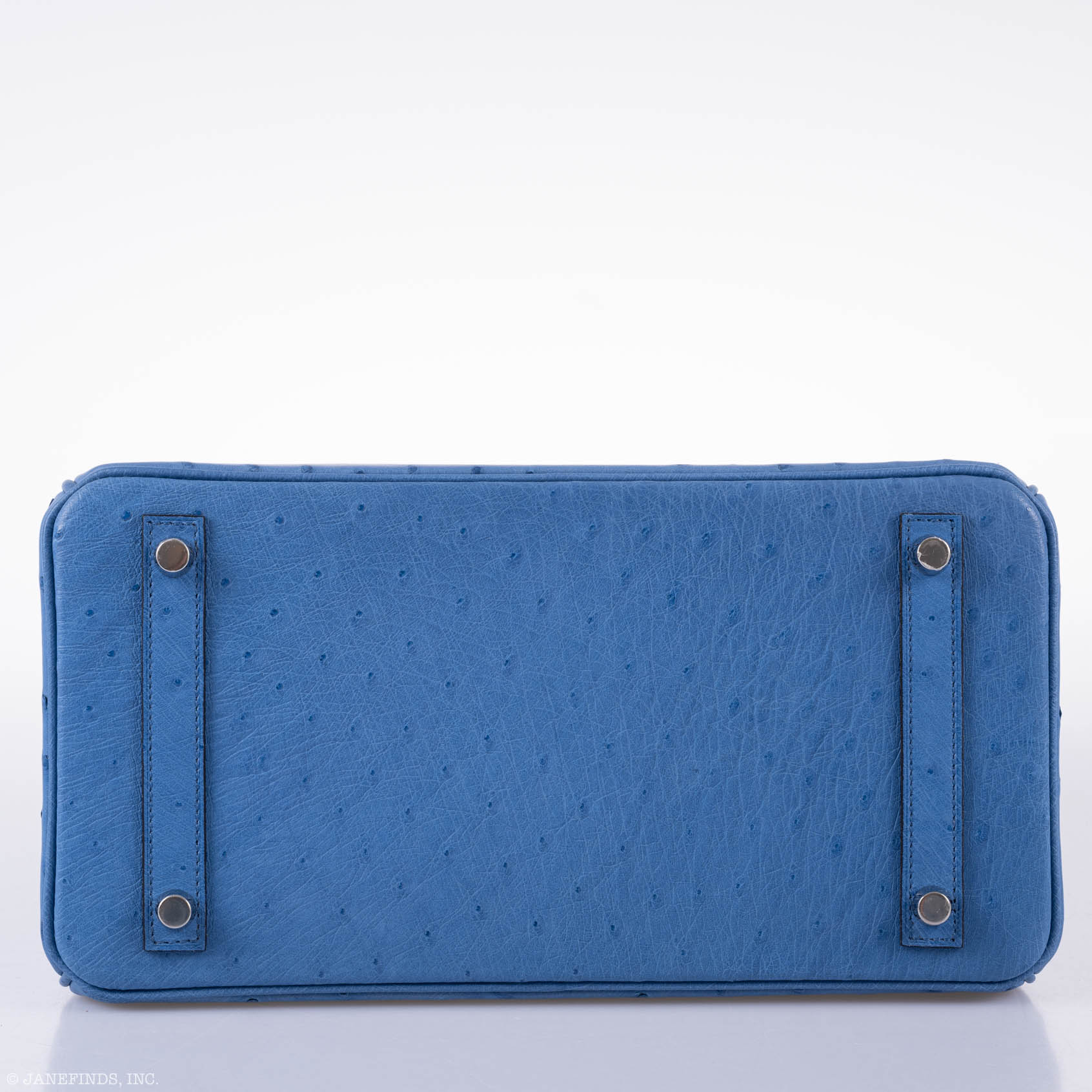 While Hermès Birkin bags are considered the rarest and most desirable bags in the world, among Birkins, exotic examples are considered even more so. One example of rare exotic skins Hermès uses to make Birkins is Ostrich, which features a unique pattern of dots made from the bird’s feathers. Hermès produces Ostrich bags in few numbers, and takes special care when deciding which colors to use. This example, done in bright blue Mykonos Ostrich is a striking example that has been kept in store fresh condition. Paired with Palladium hardware, it is a unique vision that is d to stand out among other Birkins.