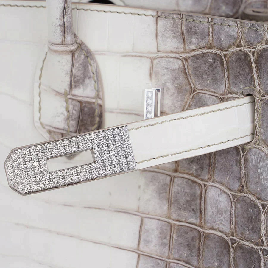 Hermes Birkin 30 Bag Diamond Himalayan Himalaya Handmade Blanc Crocodile White Gold Hardware