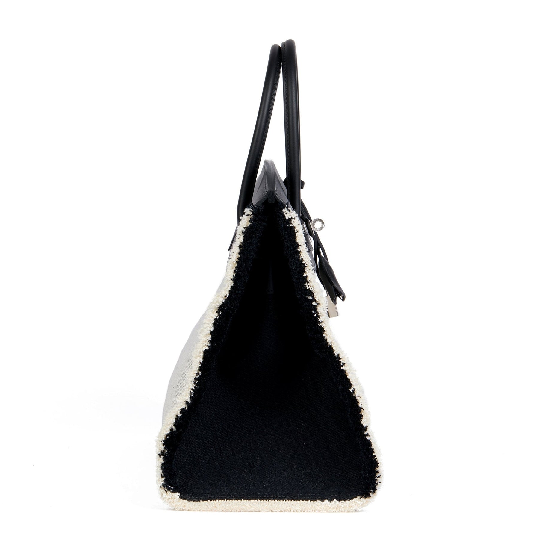 Hermes Black Swift Leather & Canvas Fray Birkin 35cm Tote
