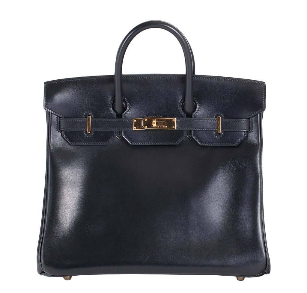 Get your hands on this beautiful Hermès HAC bag featured in the size 32. Made from exquisite box calf leather, this bag is chic and sophisticated. The black exterior is accentuated to perfection by the gold hardware. This bag is incredibly rare and nearly impossible to find anywhere else. Make a powerful fashion statement everywhere you go by treating yourself to this gorgeous HAC bag by Hermès.