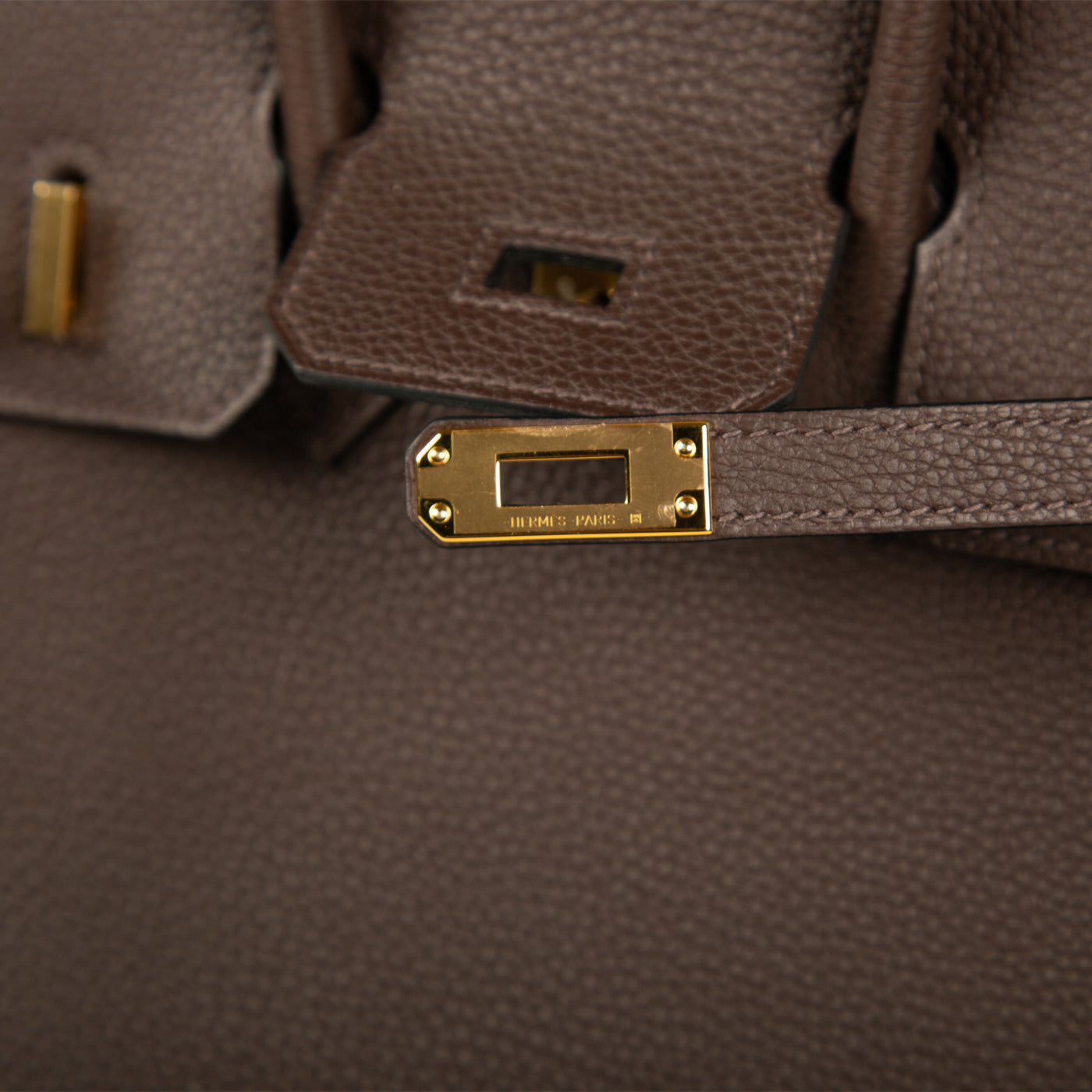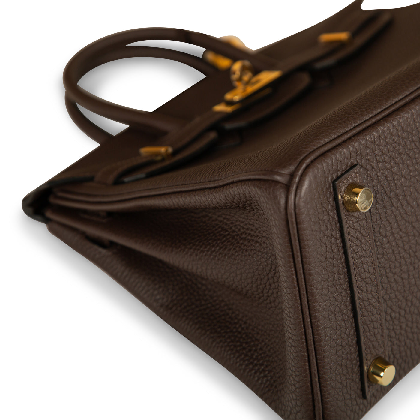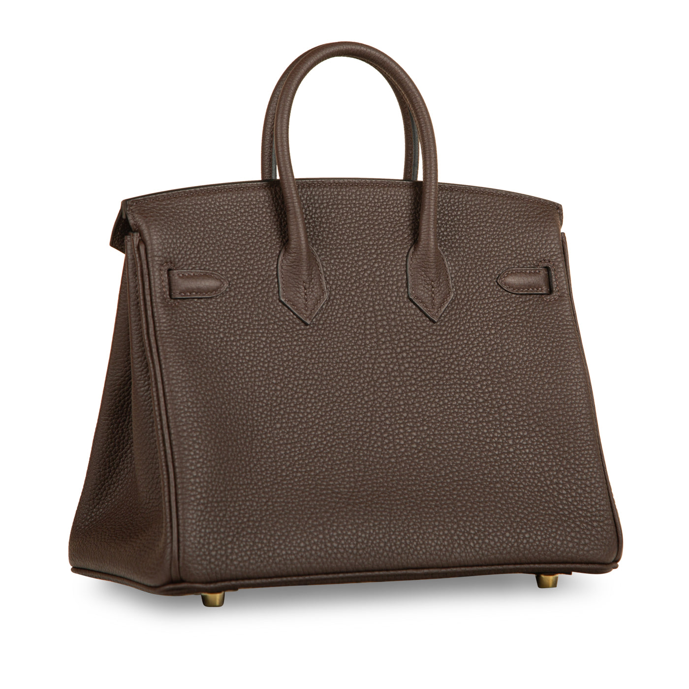 Alongside its infamous sister bag, the Kelly, Hermès presents their iconic Birkin bag - the most internationally recognized and in-demand bag in the world. Originally created in 1983 when Jean-Louis Dumas met Jane Birkin on a flight from Paris to London. During the flight, she explained how she wanted a bag that was spacious enough for everything she needed to carry and more, with plenty of pockets. Shortly after, Hermès produced the first Birkin bag - now, thirty-six years later the bag still thrives. It holds an extremely elite reputation for being a status symbol, as well as a luxury handbag that offers everything you may need. Carefully crafted in Deep Brown Togo leather and accompanies by the classic Hermès Gold hardware, this Birkin is stylish, sleek and sophisticated. The limited production Novillo leather strikes a fine balance between rigidity and softness to touch. Often stated as having the best of both togo and epsom, the combination makes for the perfect investment piece for an absolutely dreamy Birkin 25.