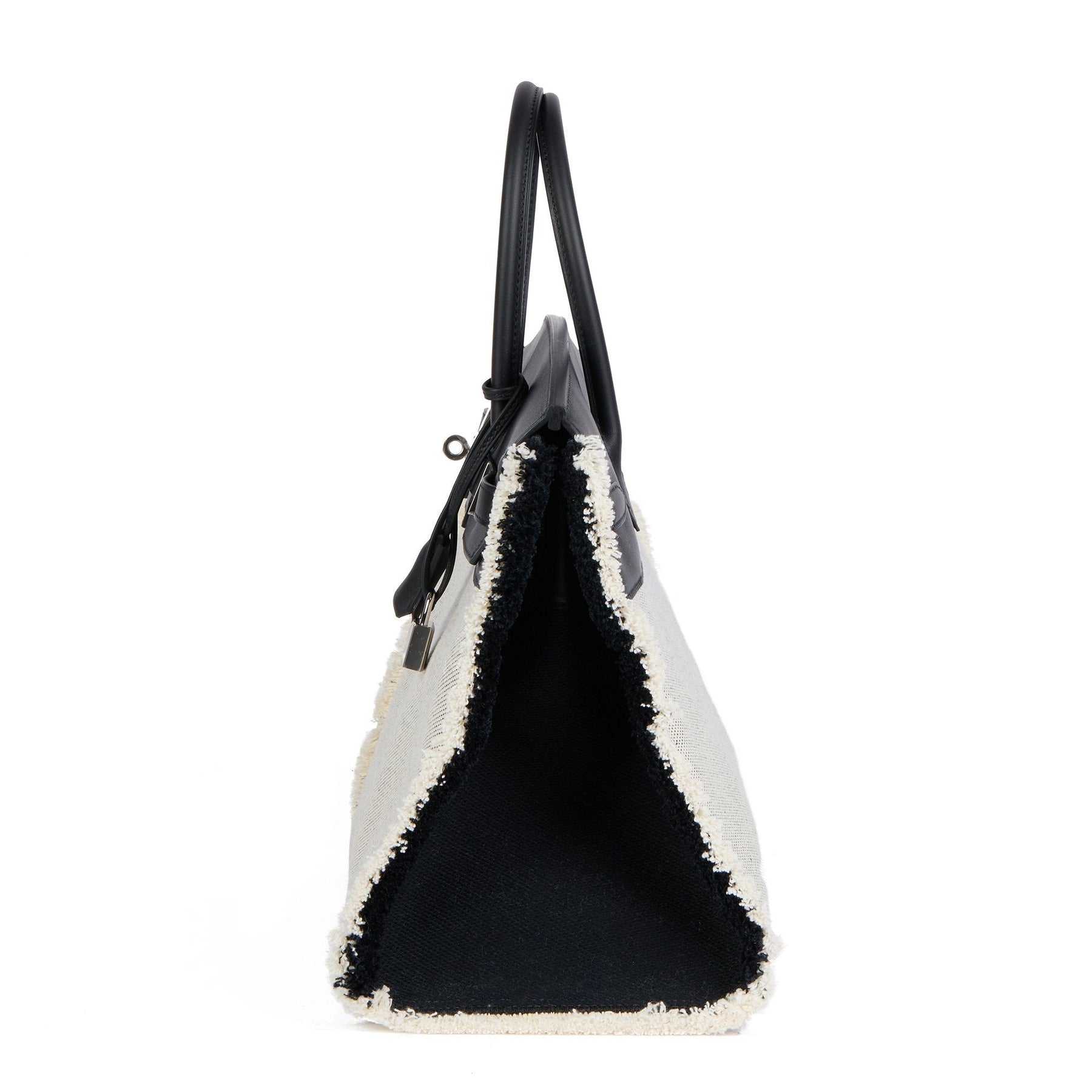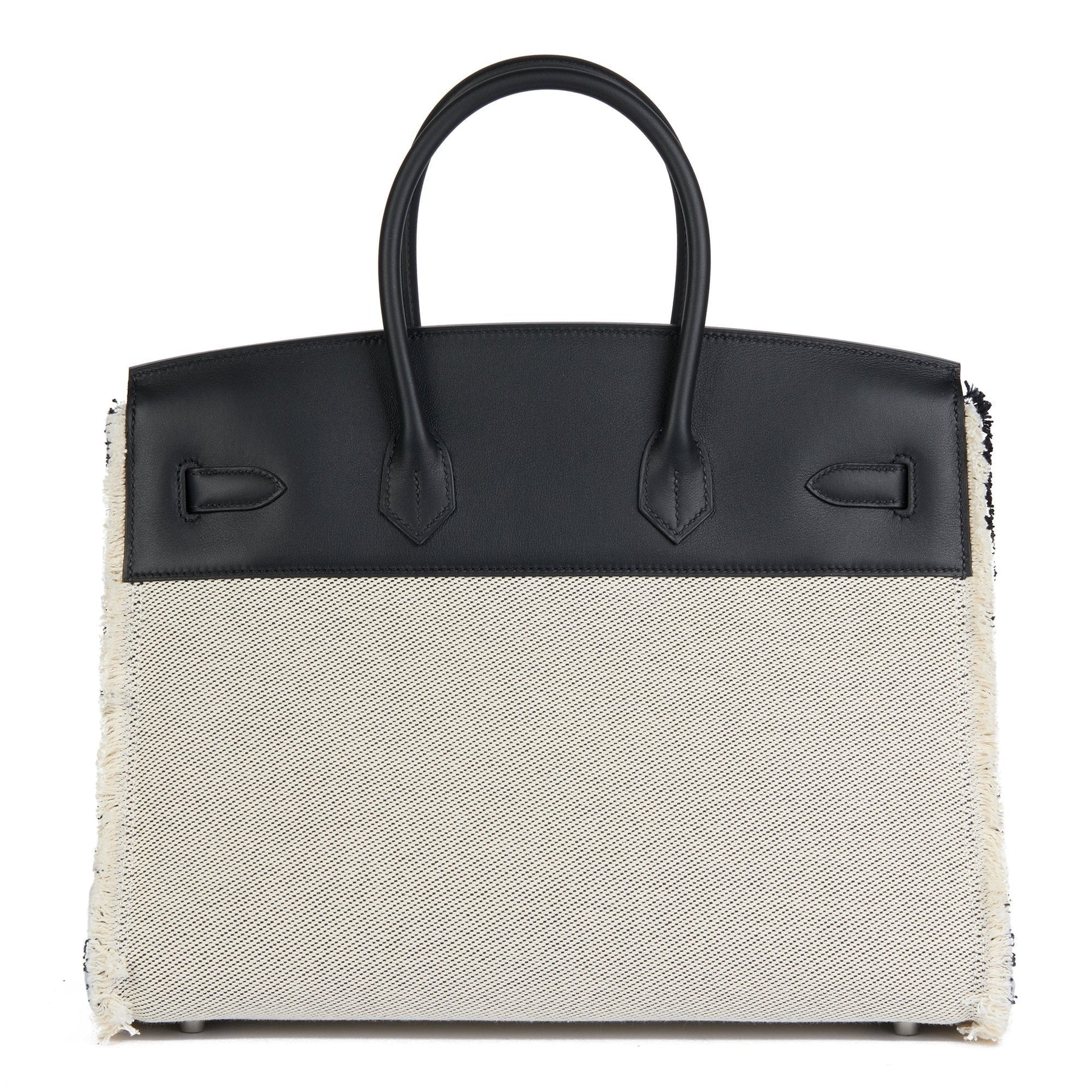 Hermes Black Swift Leather & Canvas Fray Birkin 35cm Tote