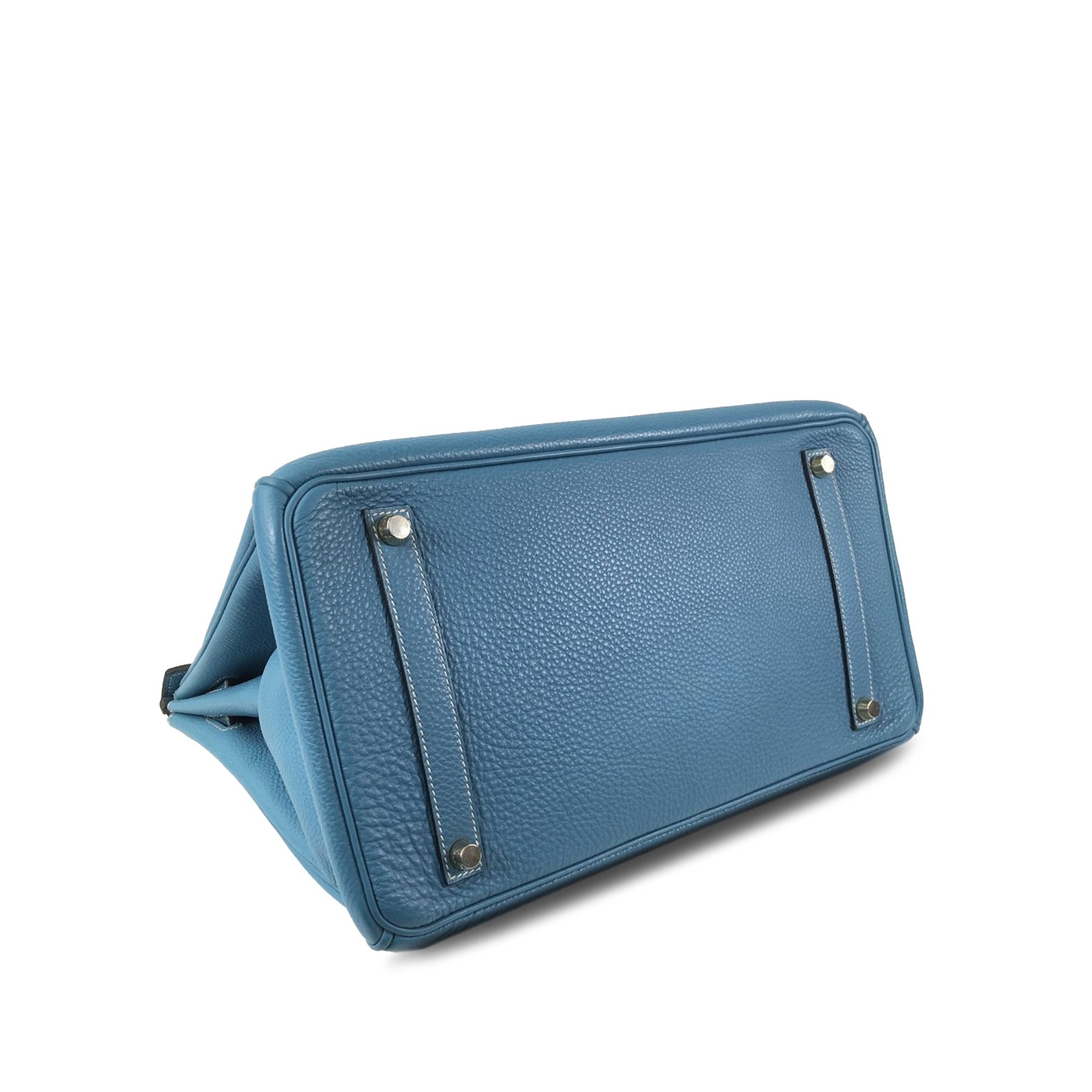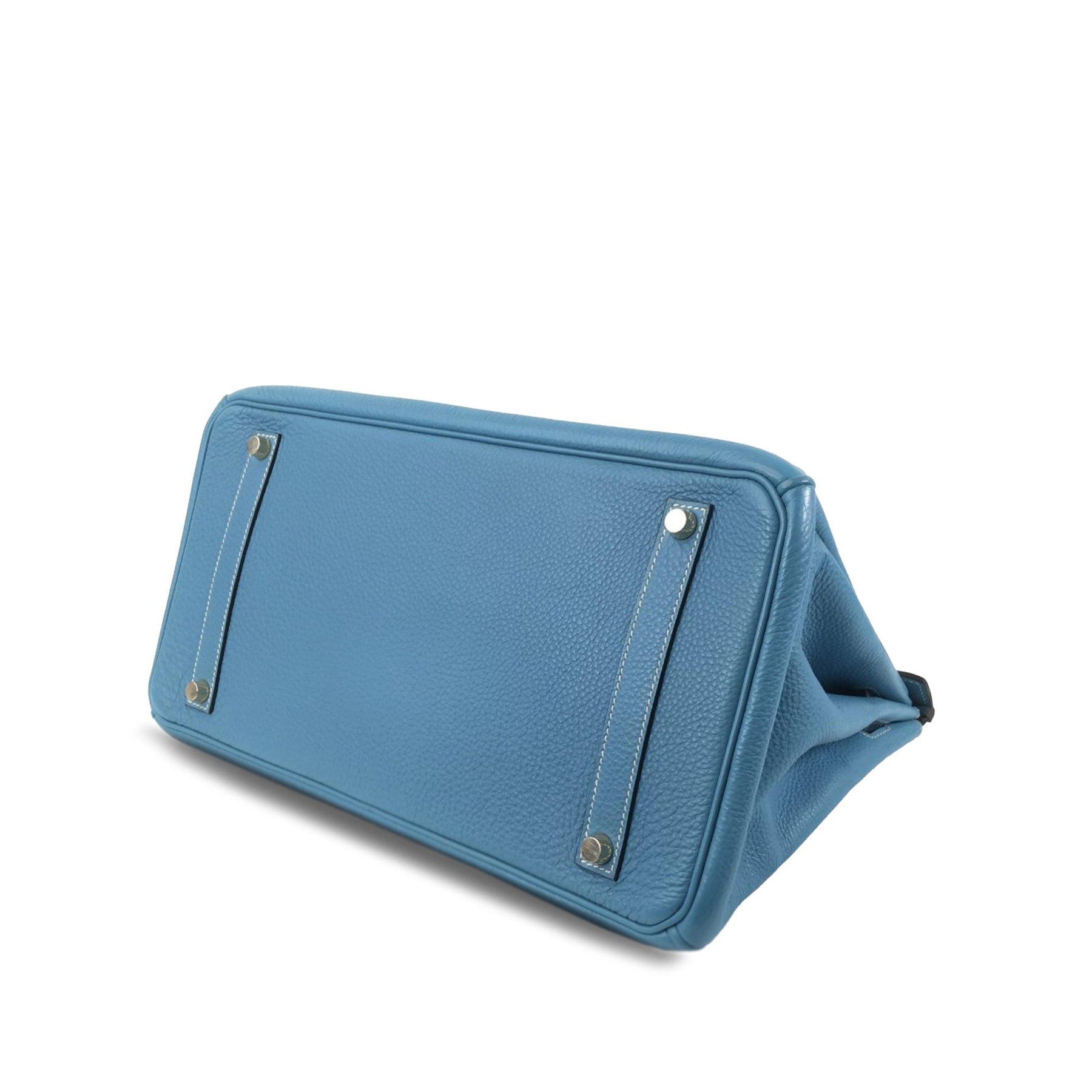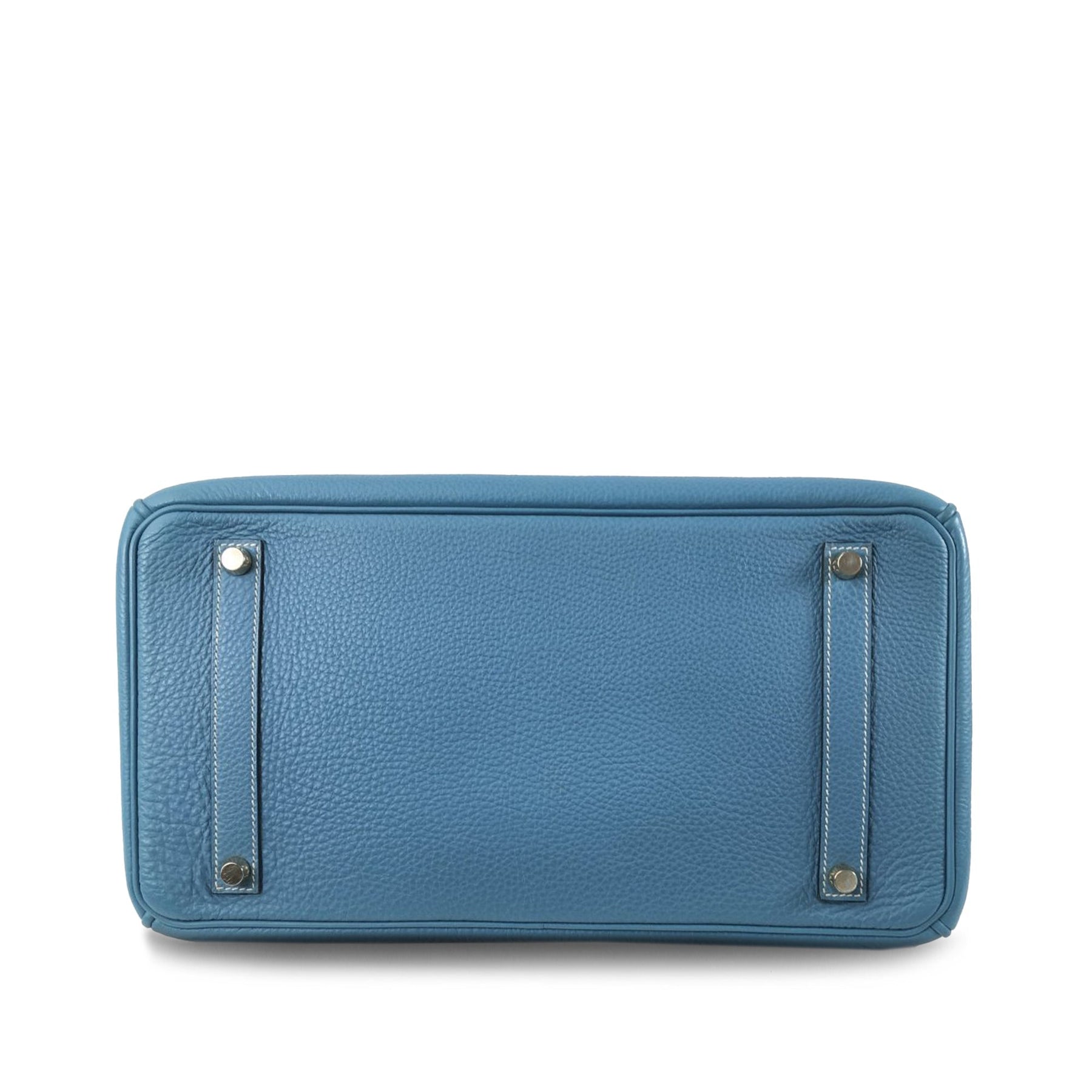 The Birkin 35 features a leather body, rolled leather handles, a front flap with turn-lock closure, and interior zip and slip pockets.