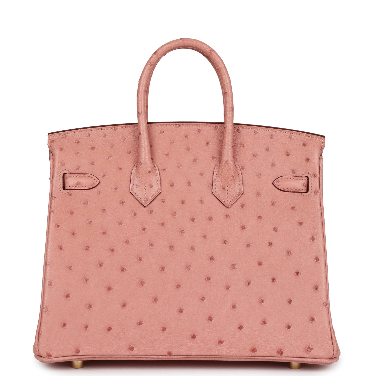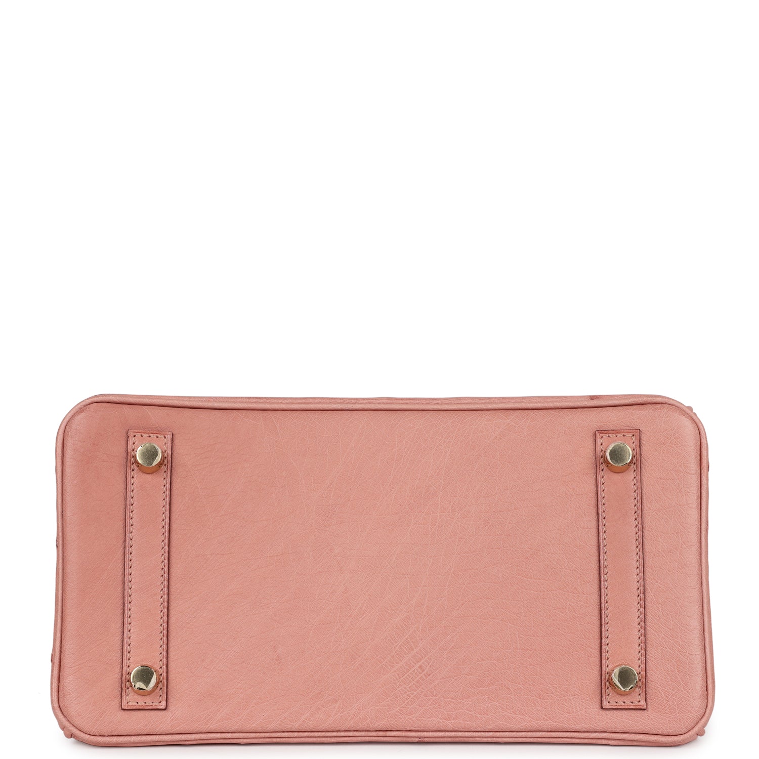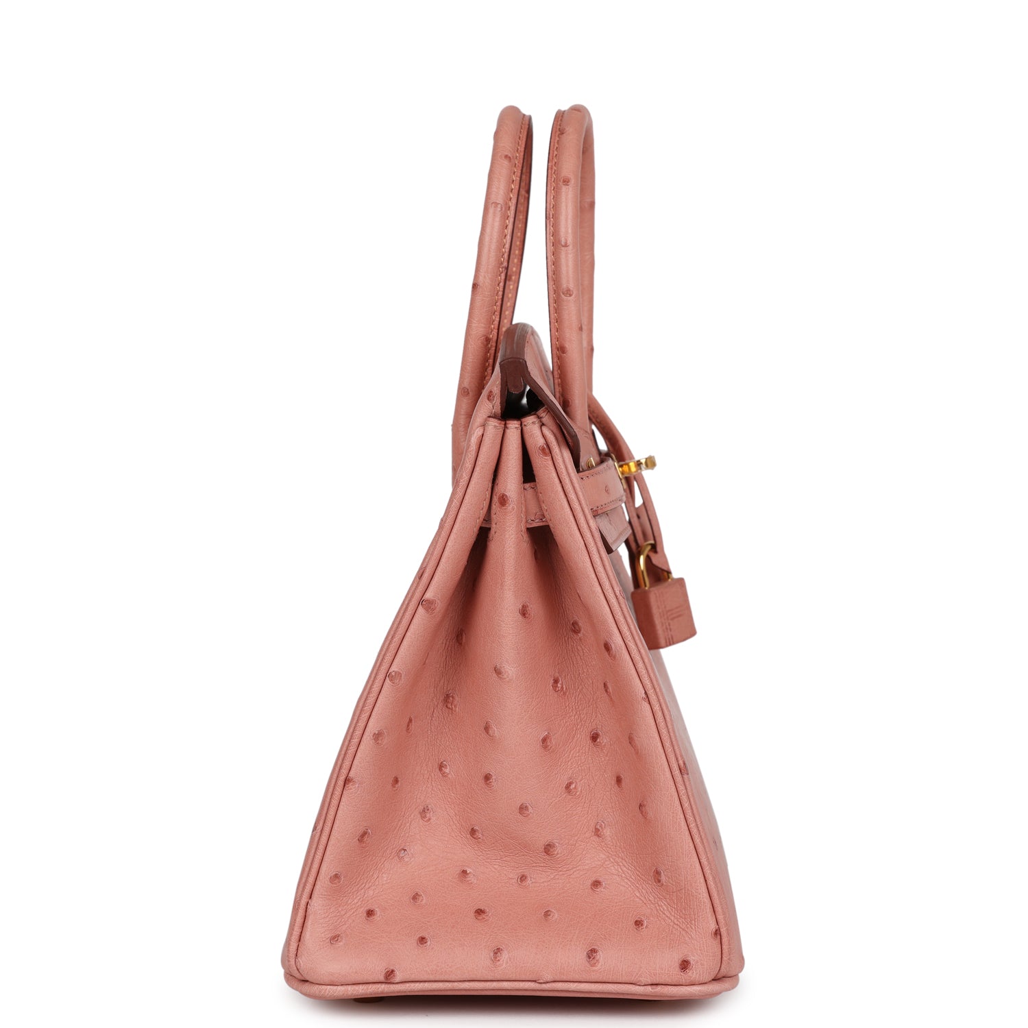 This Birkin is in Terre Cuite ostrich with gold hardware and features tonal stitching, front flap, two straps with center toggle closure, clochette with lock and two keys, and double rolled handles.
