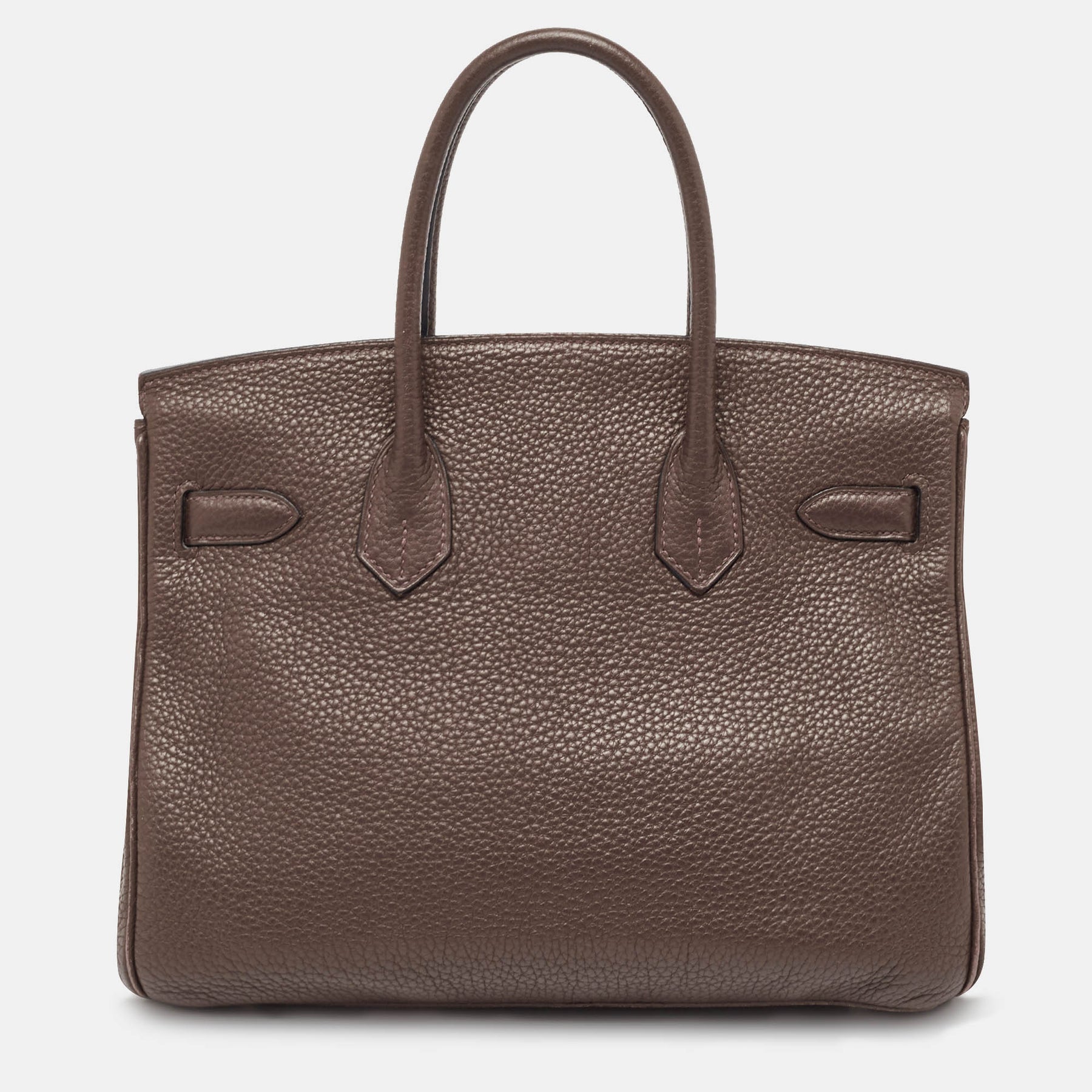 HERMES Chocolat Taurillon Clemence Leather Palladium Finish Birkin 30 Bag