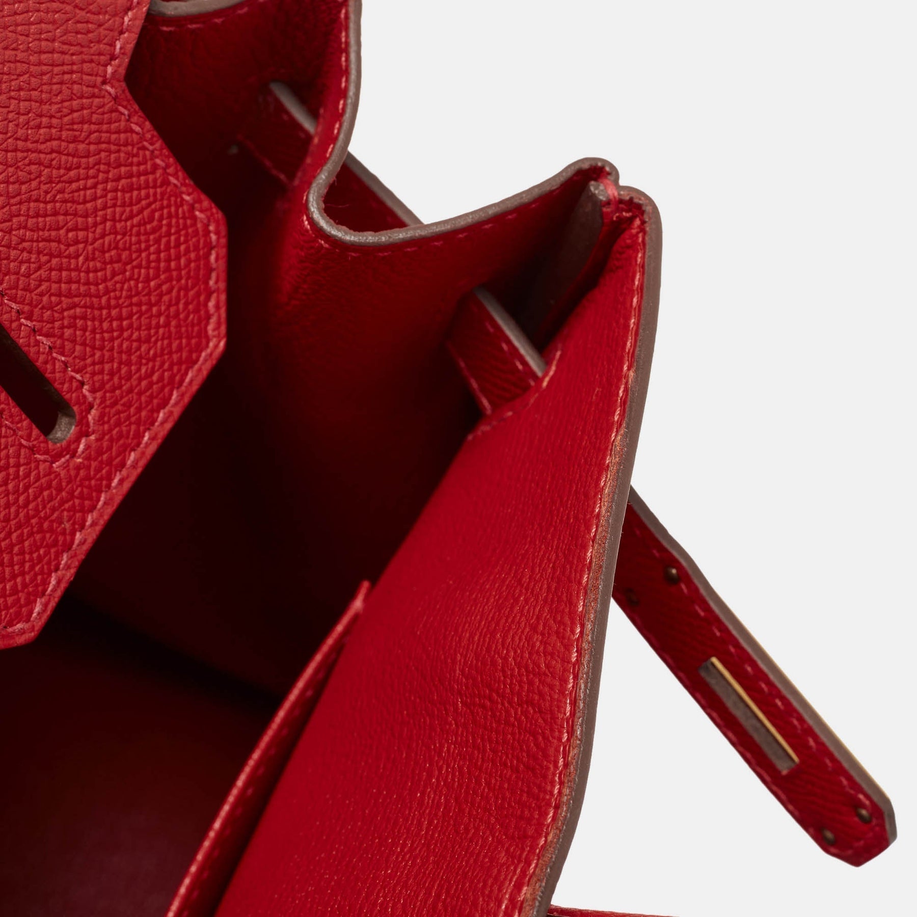 Hermes Rouge Casaque Epsom Leather Gold Finish Birkin 30 Bag