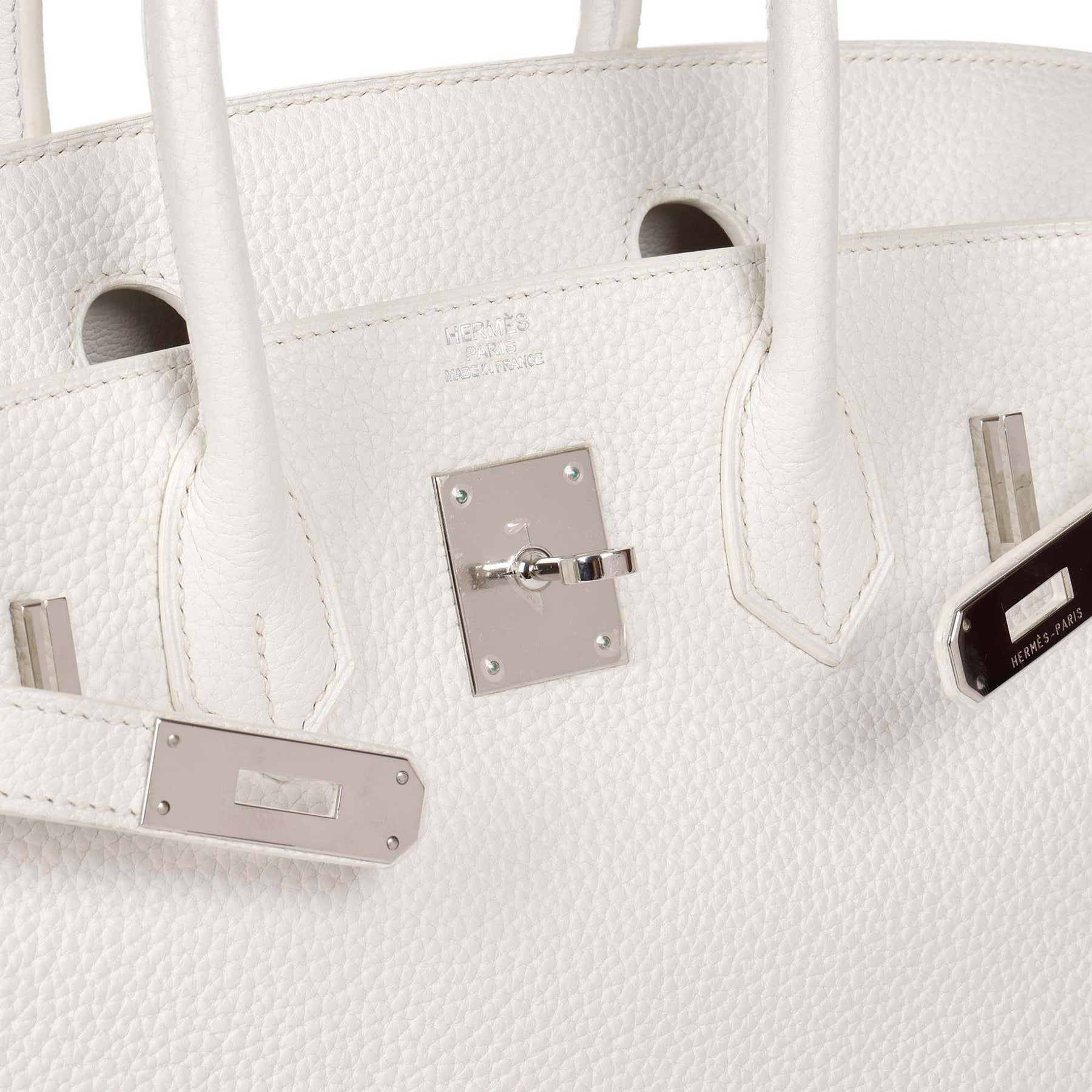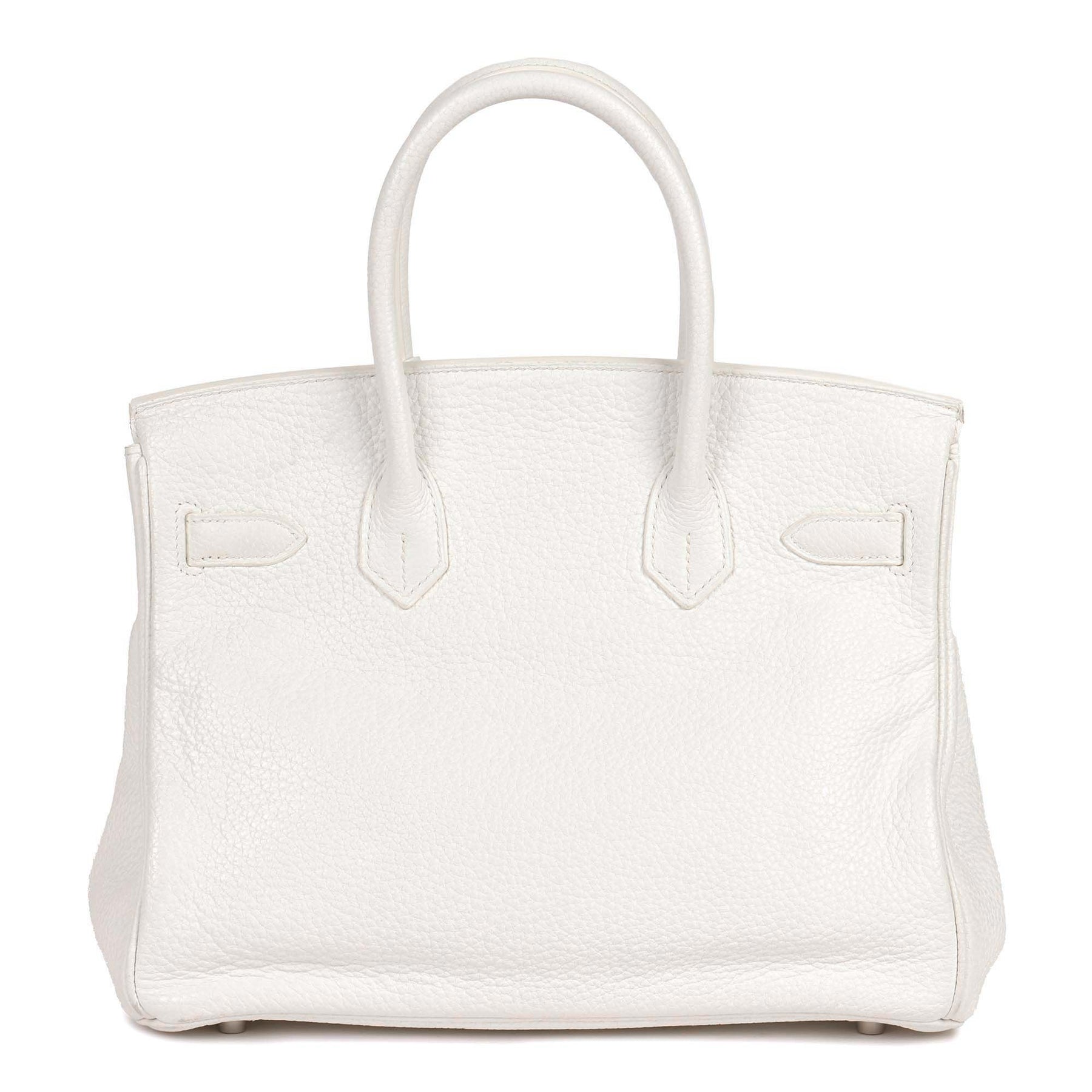Hermes White Clemence Leather Birkin 30cm Retourne Tote