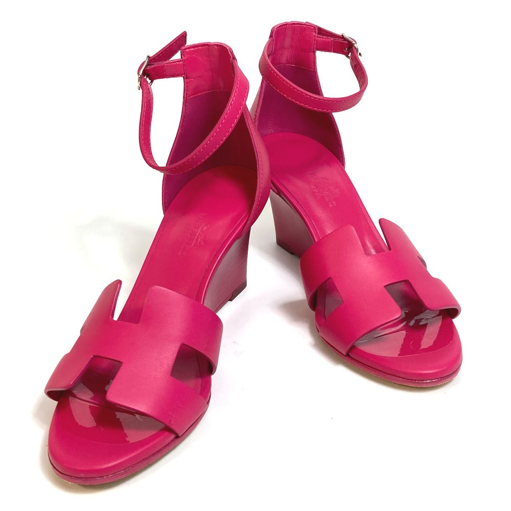 Hermes Hロゴ レジェンド ウェッジソール サンダル レザー レディース