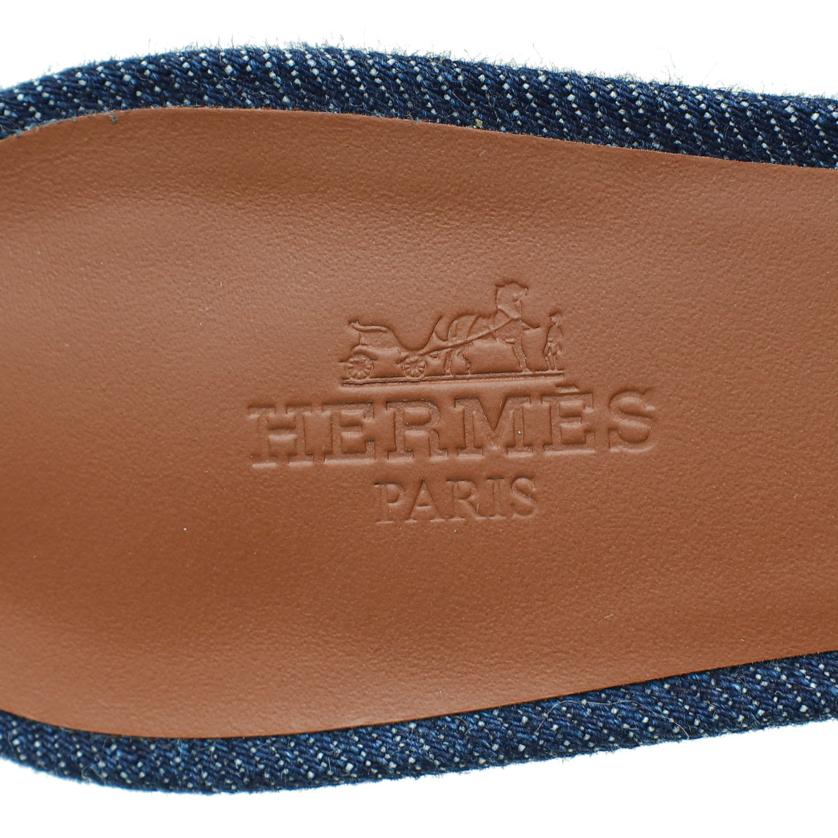 - Material: Bleu Brut Denim with Iconic "H" Cut Out and Gold Calfskin Leather