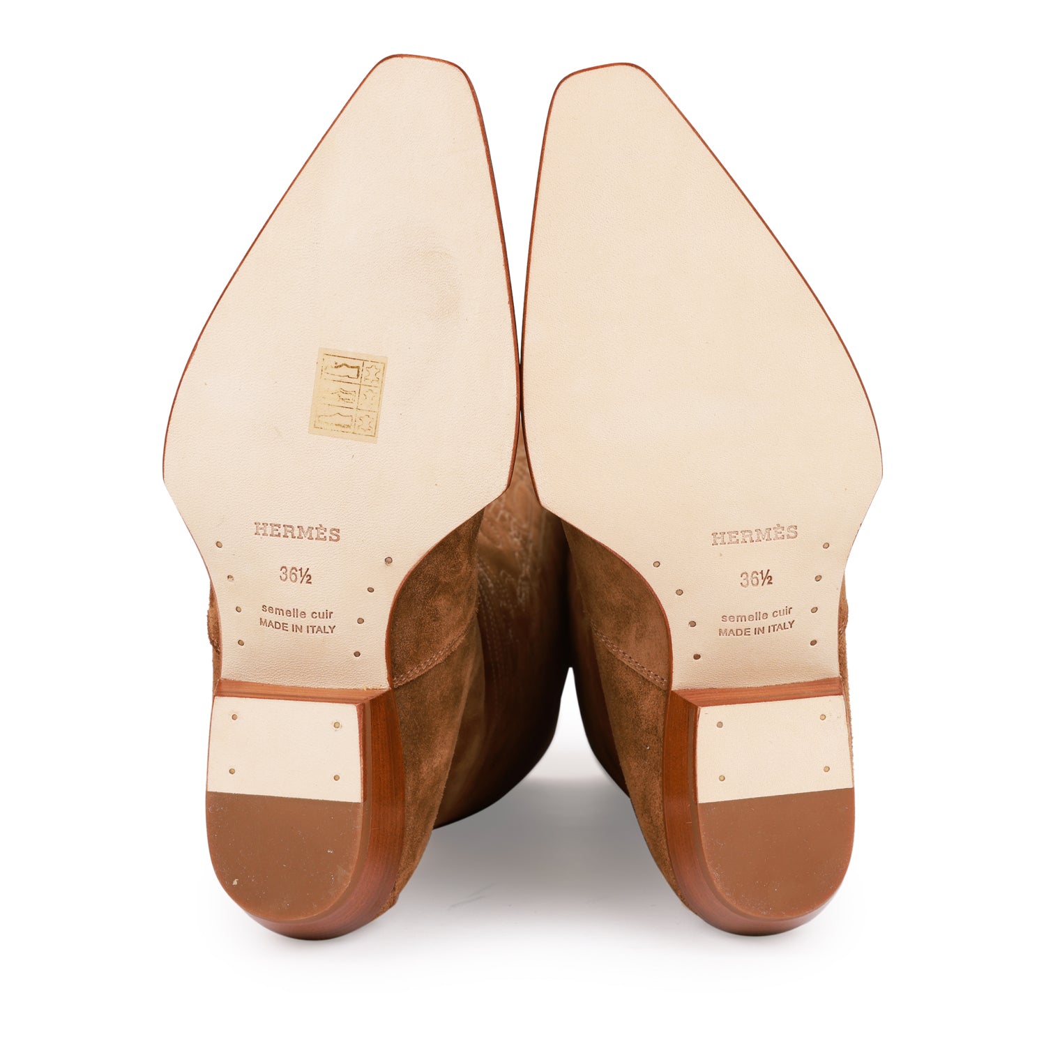 Hermes Brown Suede Calfskin "Folk 35" Cowboy Boots 36.5