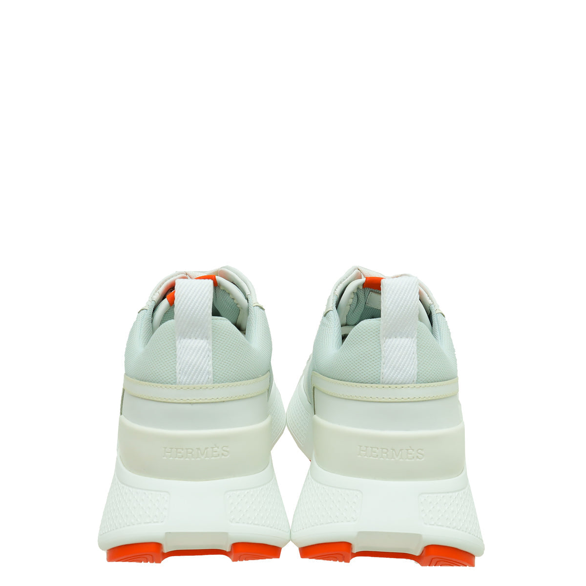 - Material: White/Light Blue/Orange Mesh Pique and Calfskin Leather