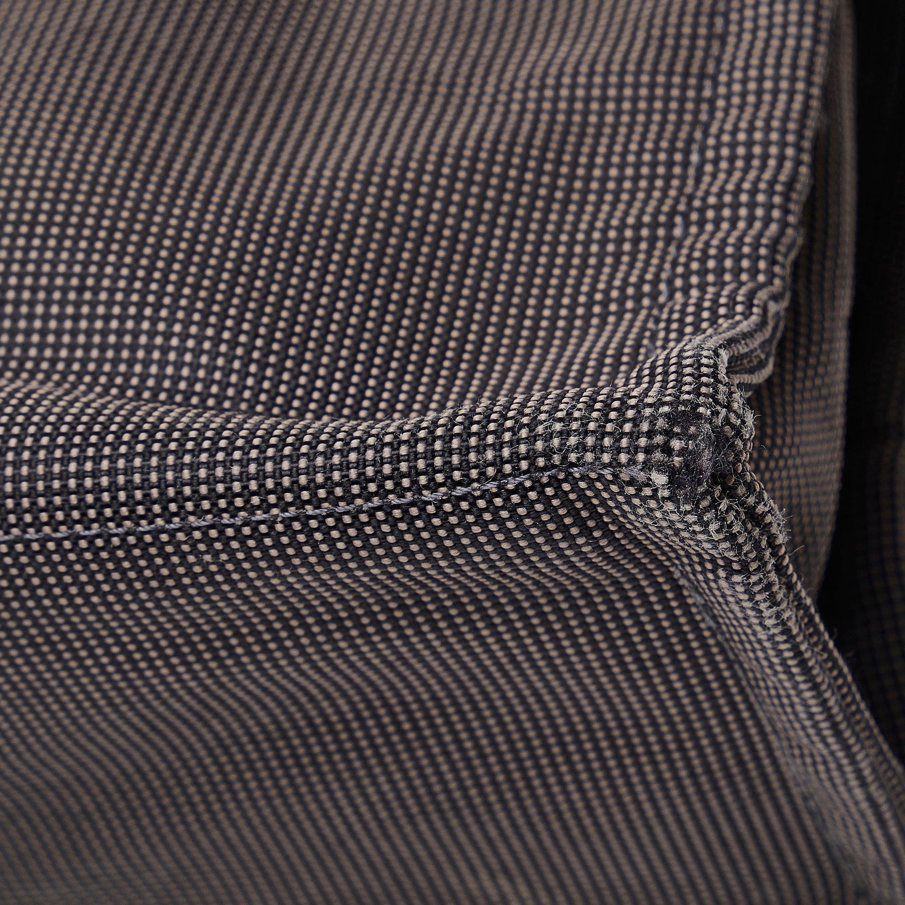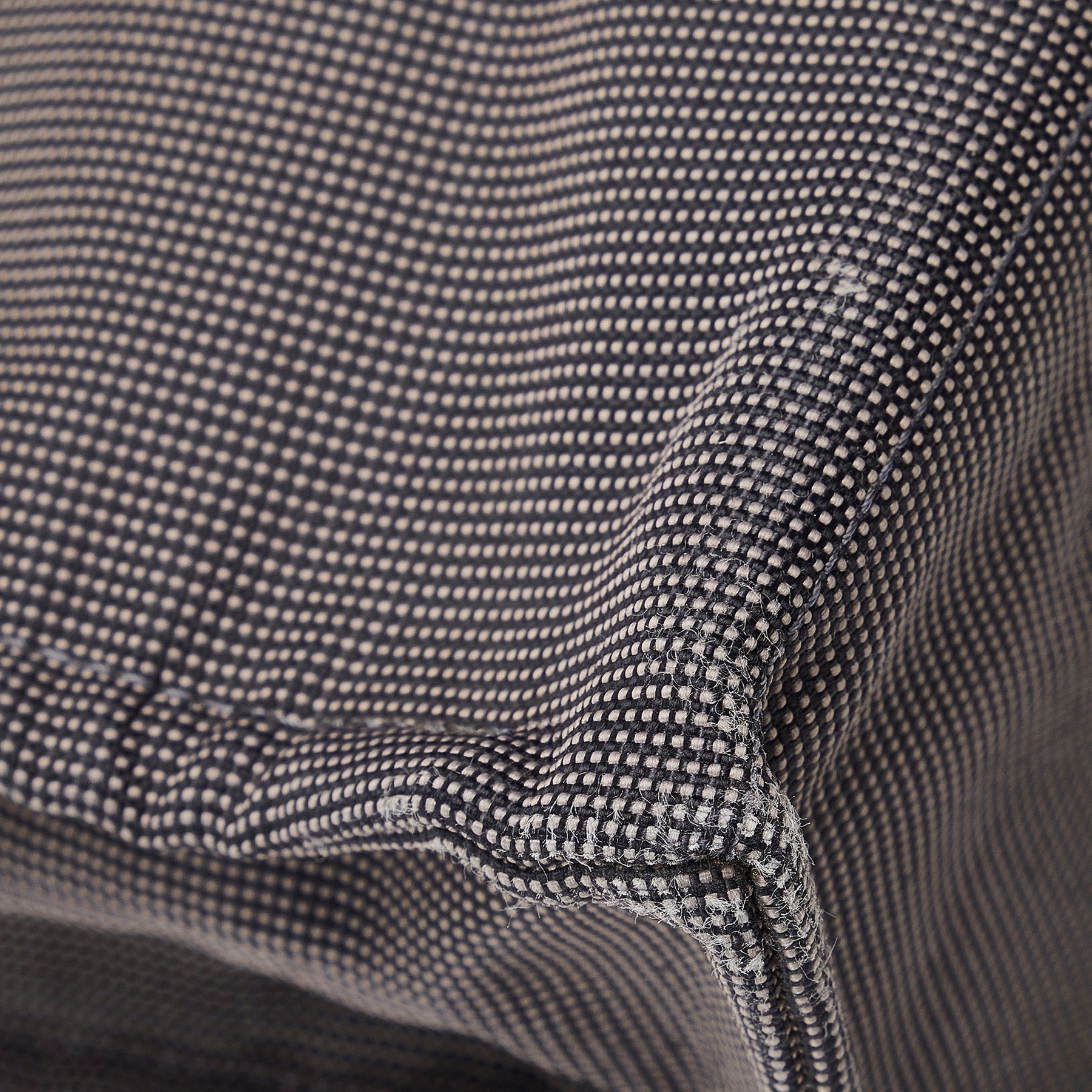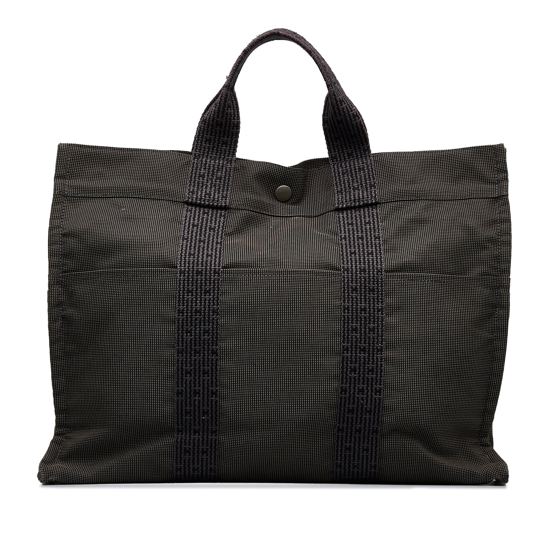 Product Details: Gray Hermes Fourre Tout MM Tote Bag. The Fourre Tout MM tote features a canvas body, flat handles, an open top with a snap closure, exterior front and back slip pockets, and an interior zip compartment. 12.6" L x 16.5" W x 4.3" D, 4.3" drop.