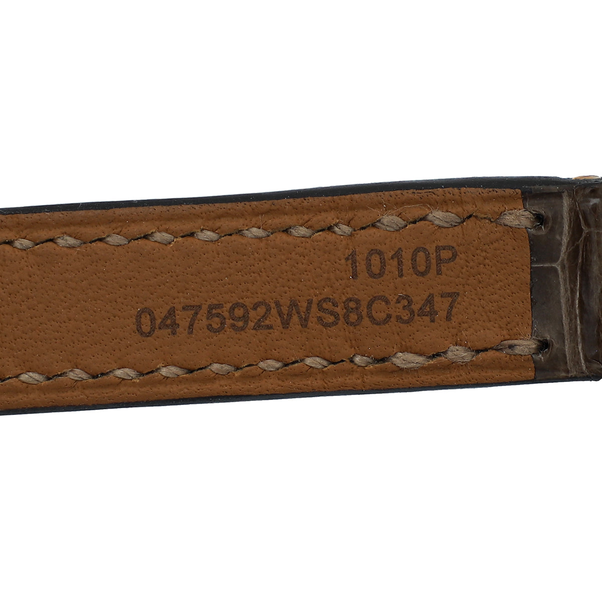 - Material: 18K Gold Rose Case with White Dial and Elephant Grey Alligator Leather